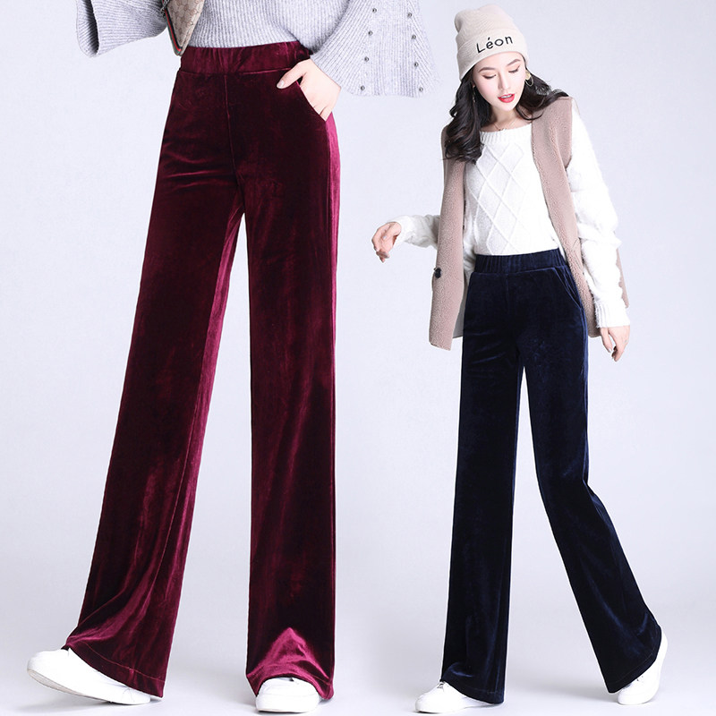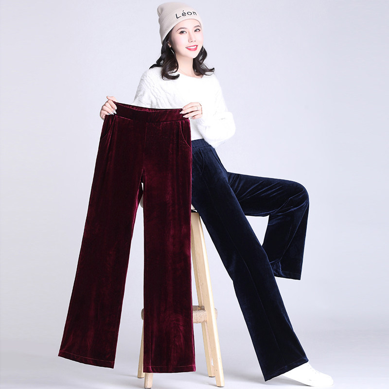 Бархатные штаны, повседневные брюки для отдыха, высокая талия, свободный прямой крой