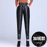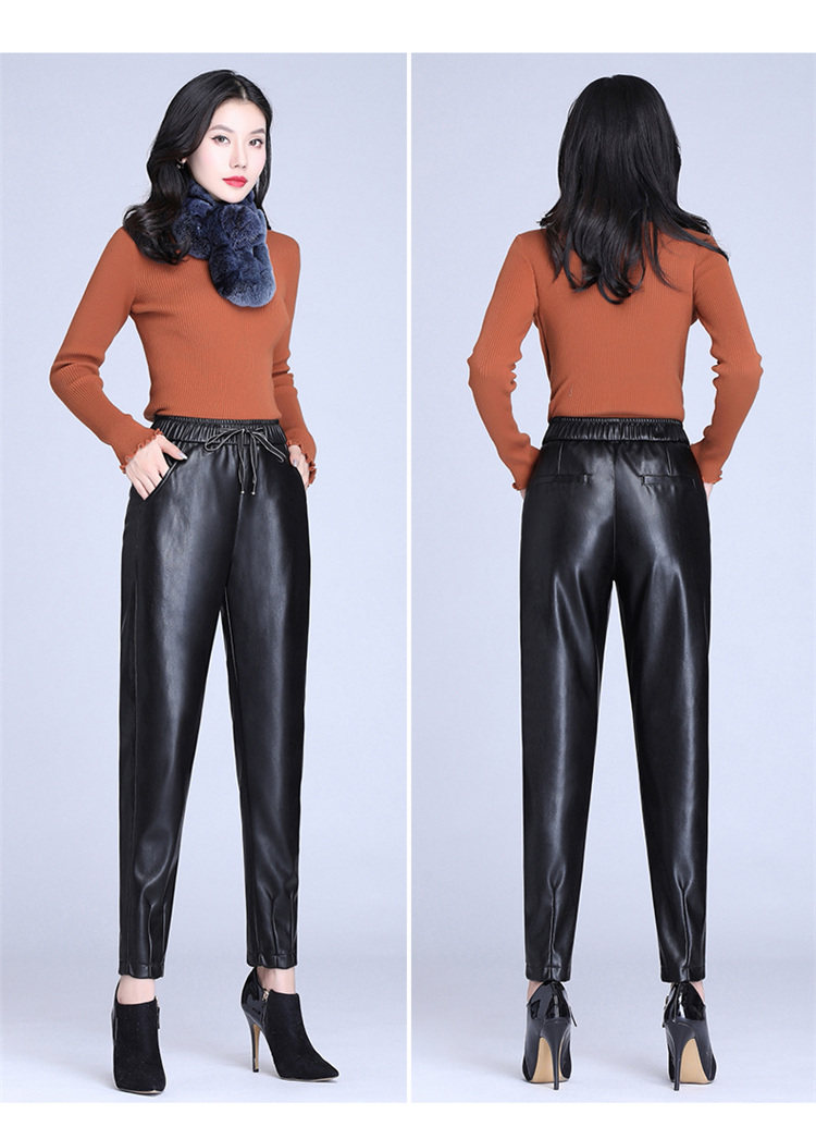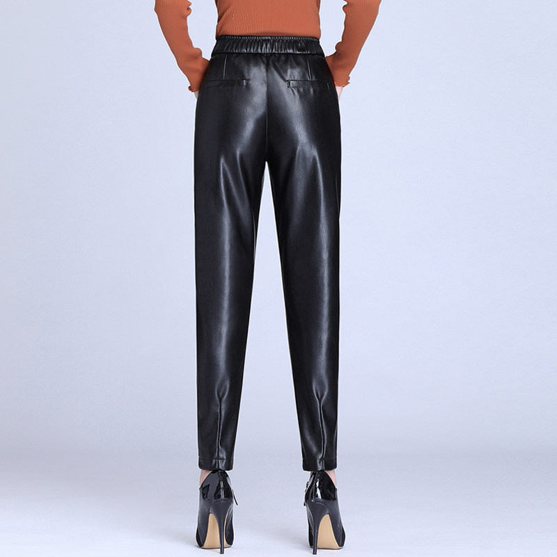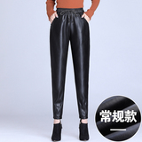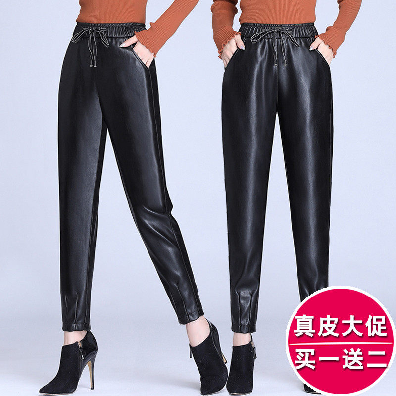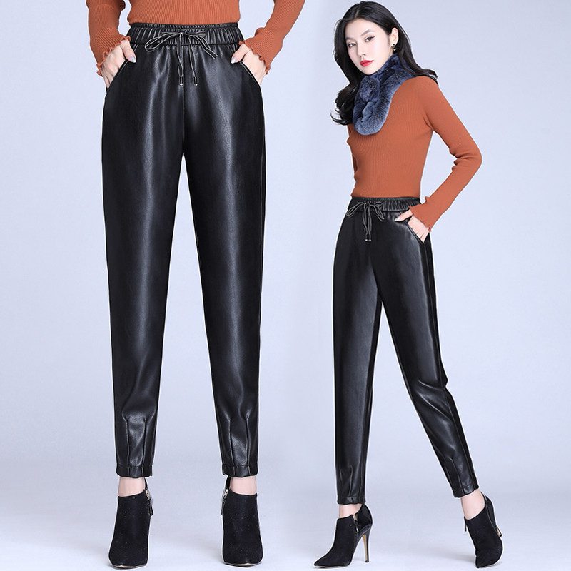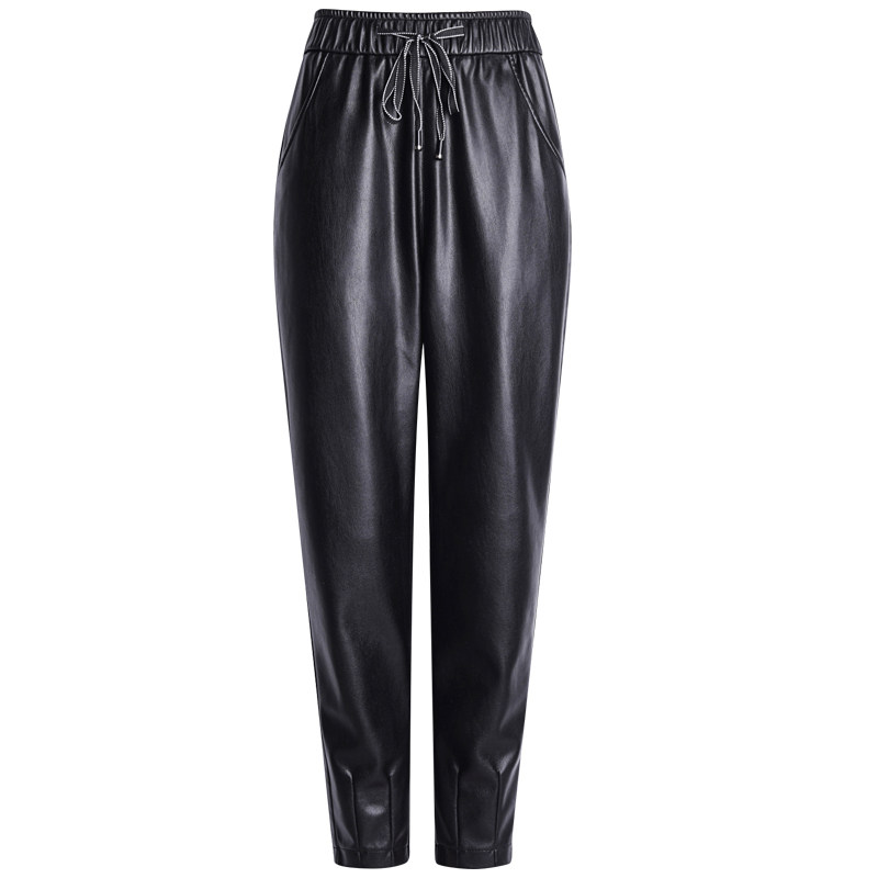 Демисезонные флисовые штаны, из натуральной кожи, по фигуре, высокая талия, свободный крой