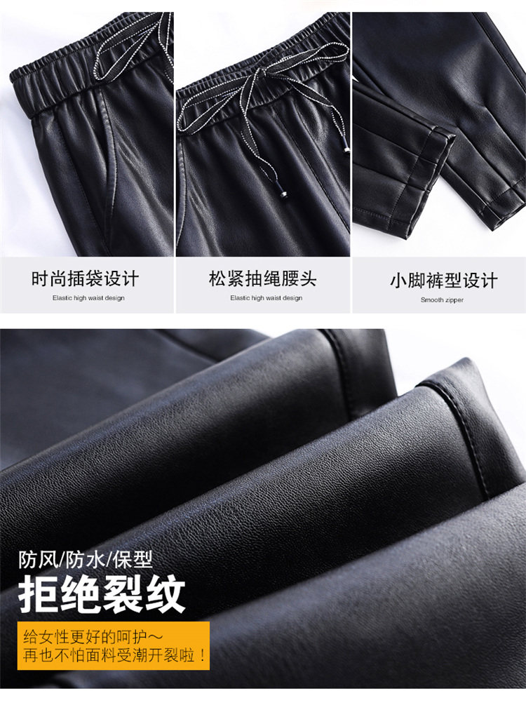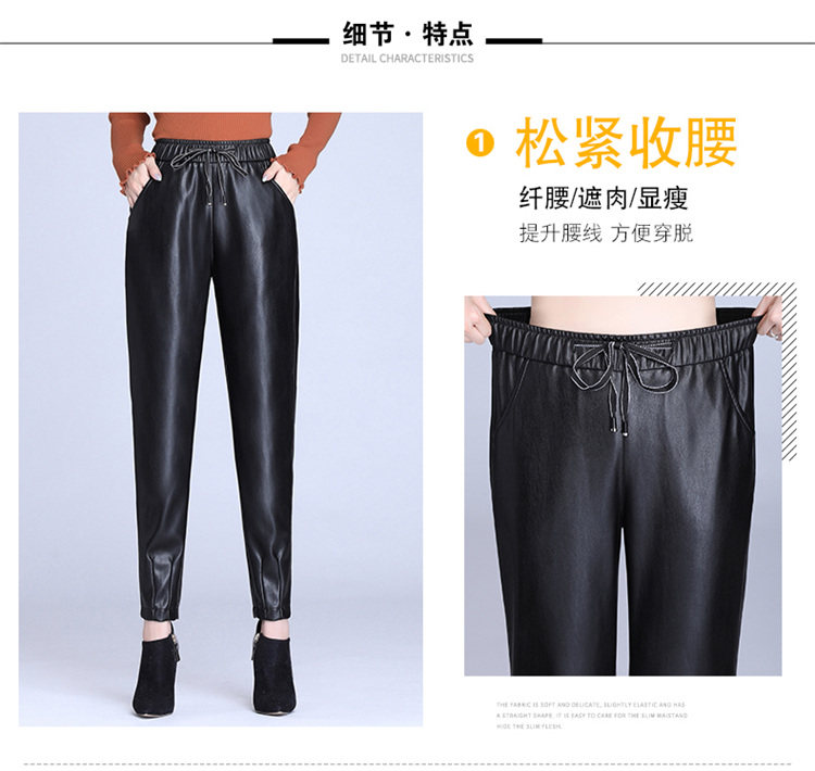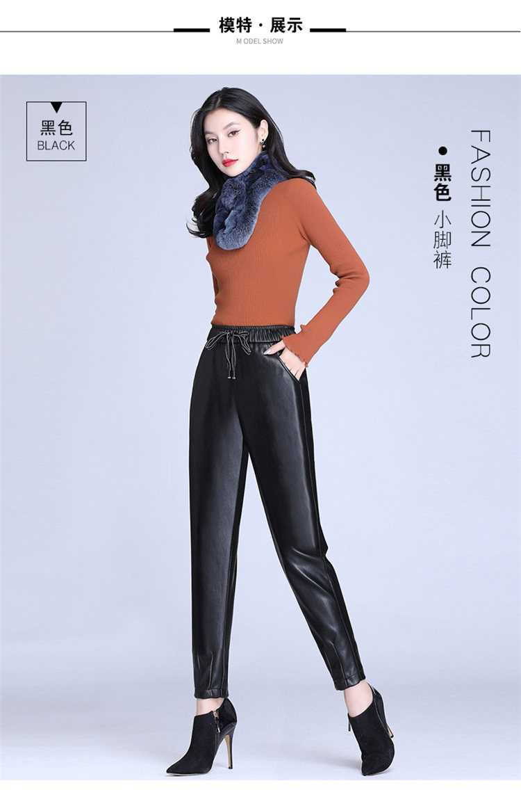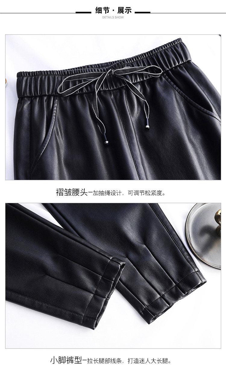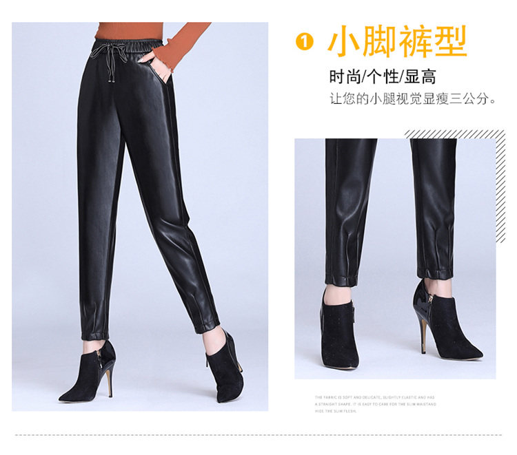 Демисезонные флисовые штаны, из натуральной кожи, по фигуре, высокая талия, свободный крой