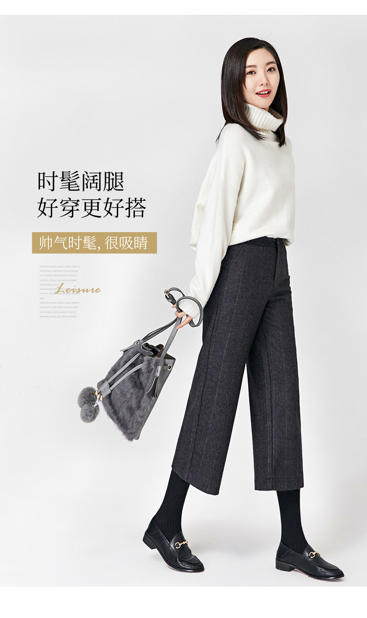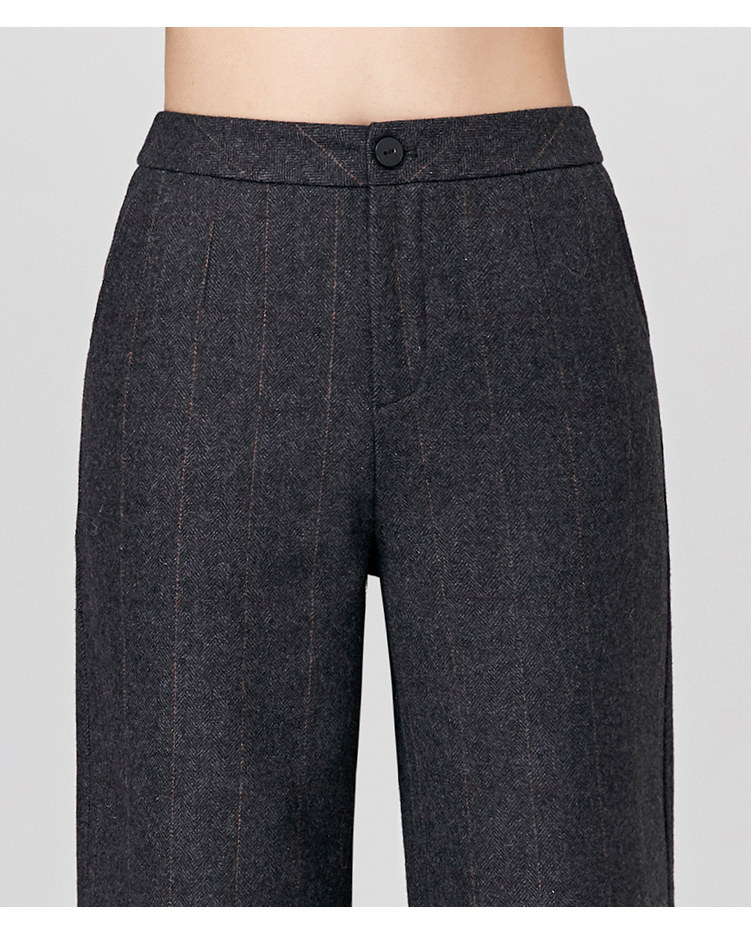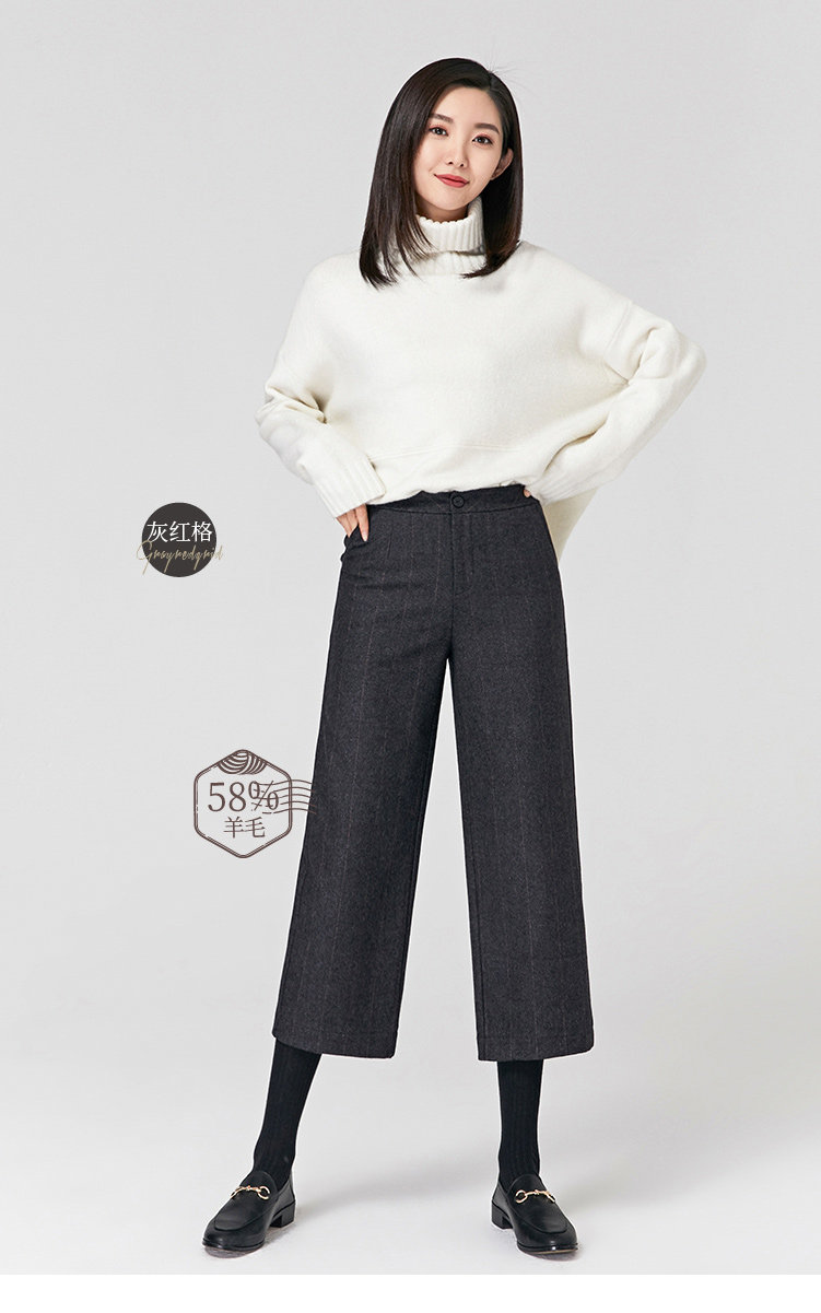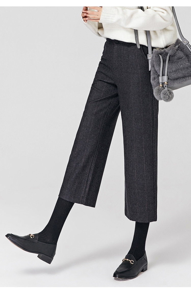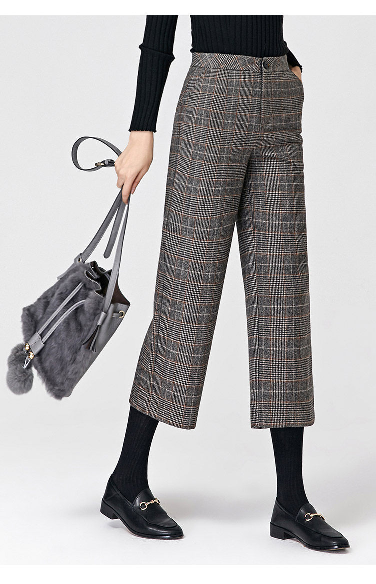 Демисезонные шерстяные зимние штаны, 2019, высокая талия, свободный прямой крой