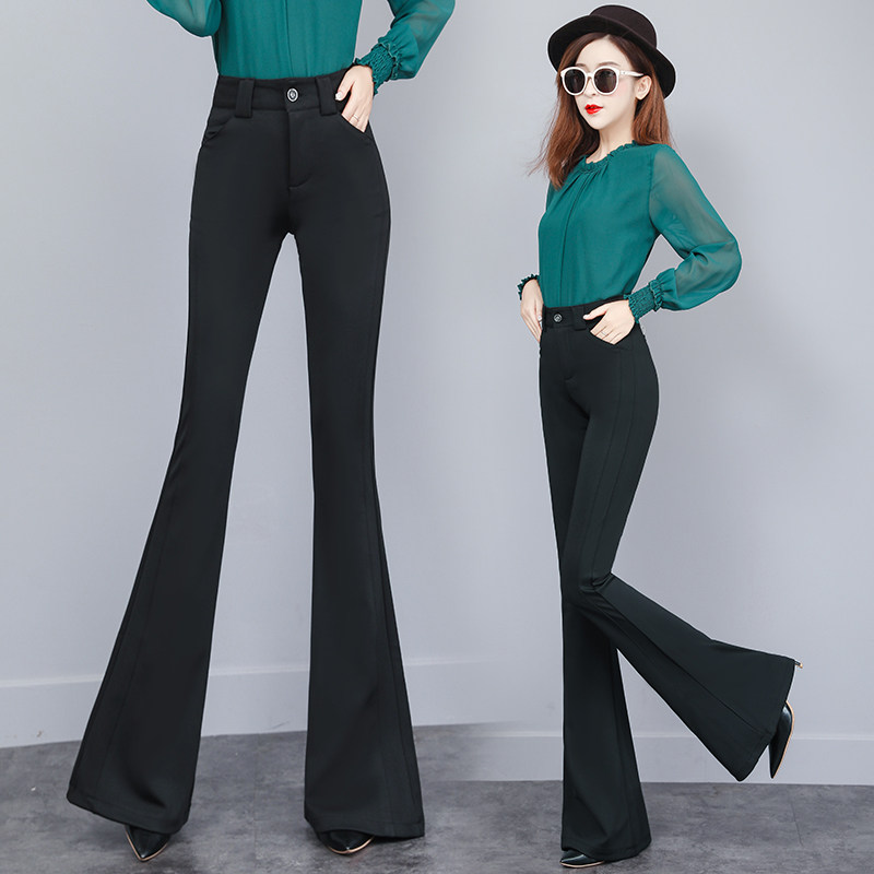 Черные штаны-клёш, эластичные осенние штаны, высокая талия, свободный прямой крой