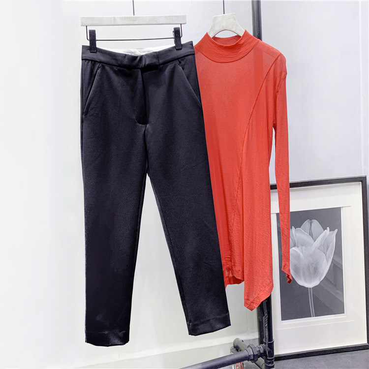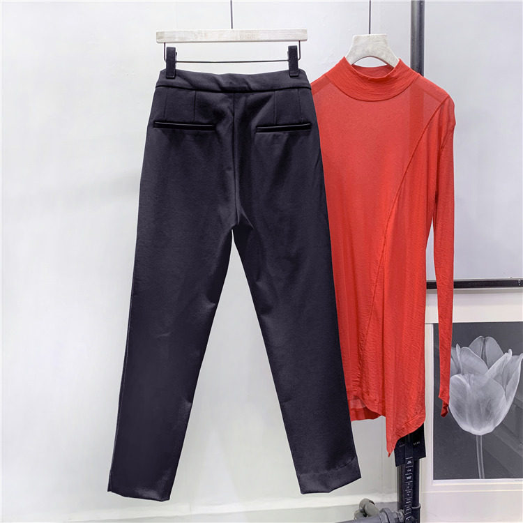 Wuzhi Высококачественное самостоятельно!Боковая сплита, тонкие дикие брюки с сигарет высокая талия с прямыми брюками девять брюк 83047