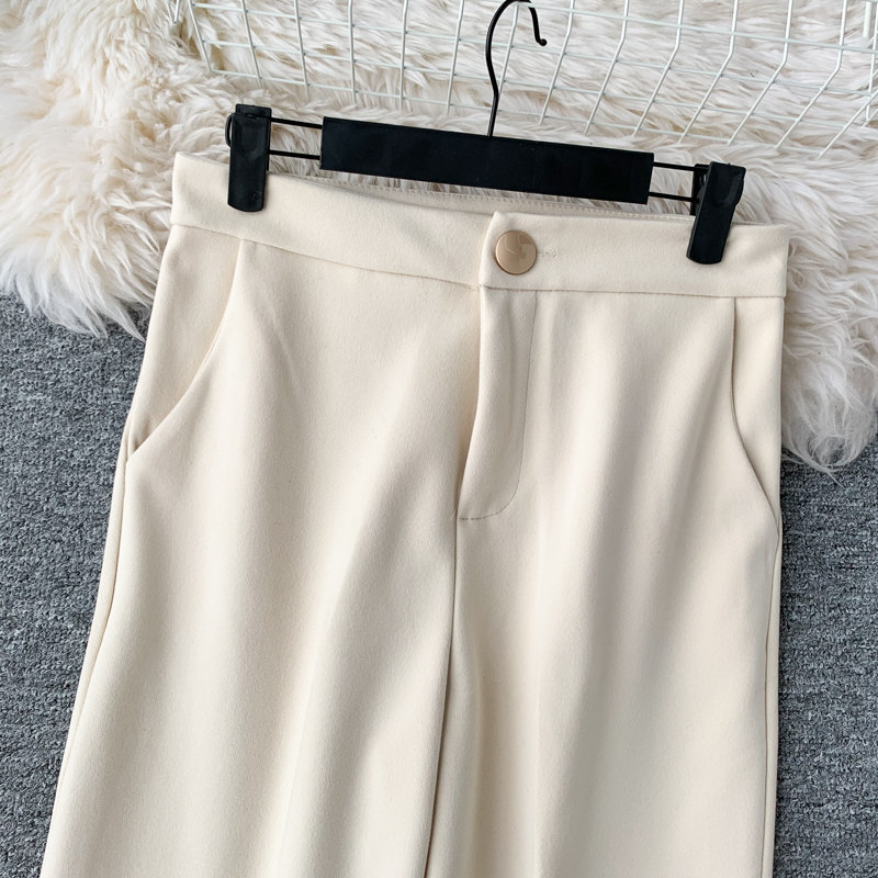 Шерстяные демисезонные штаны, 2019, высокая талия, свободный прямой крой