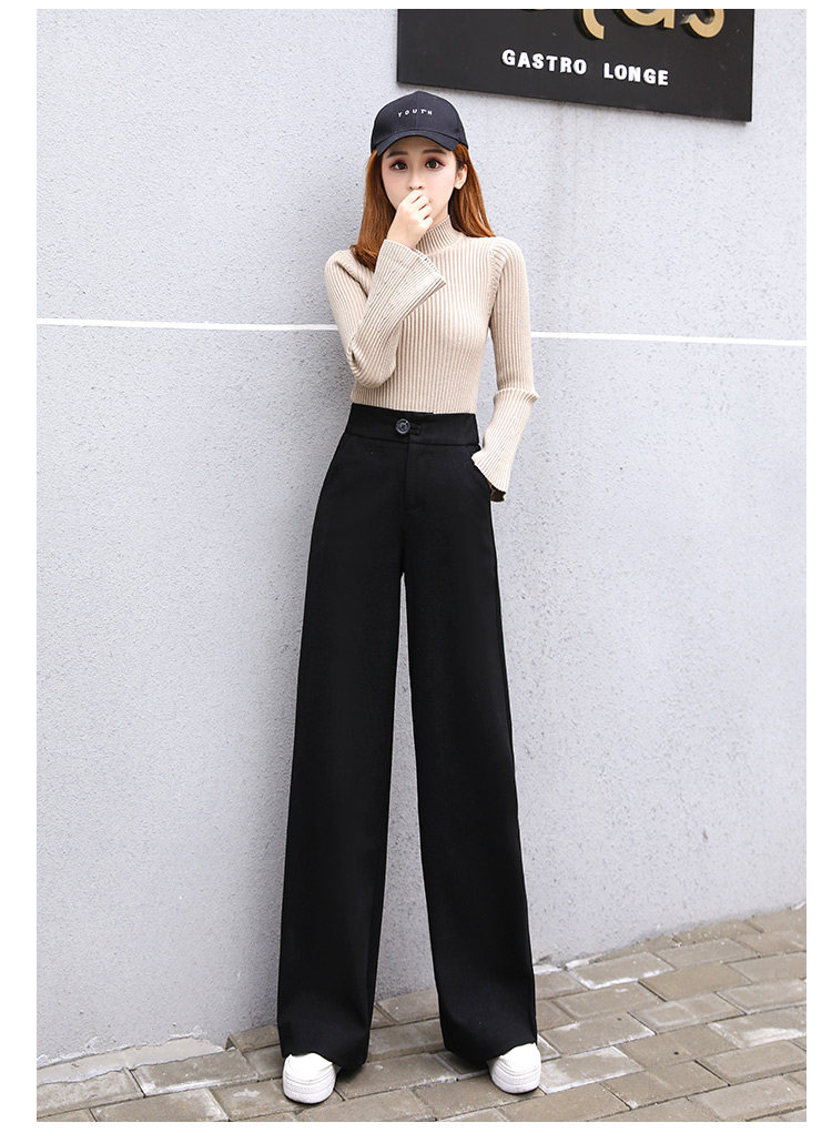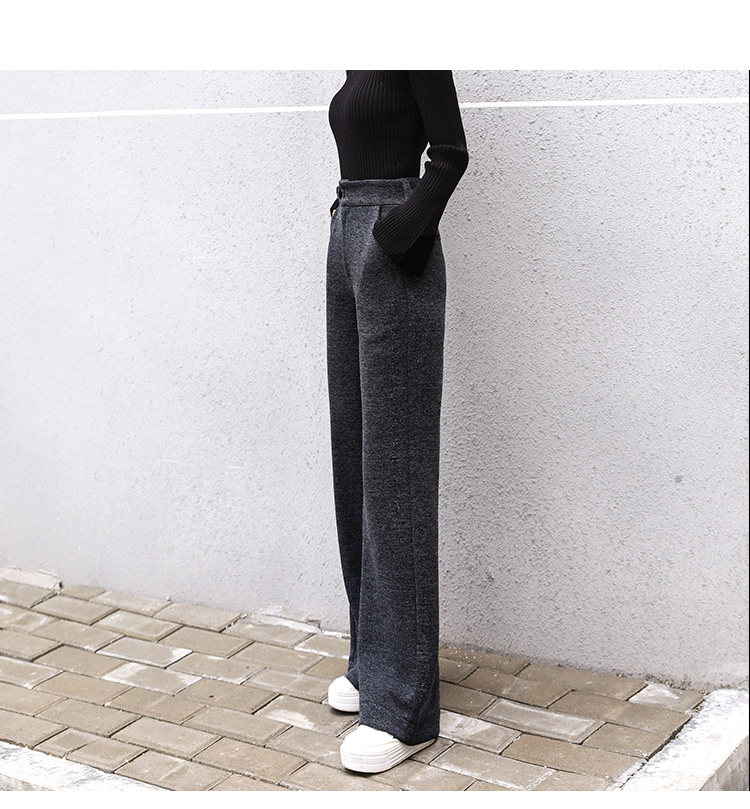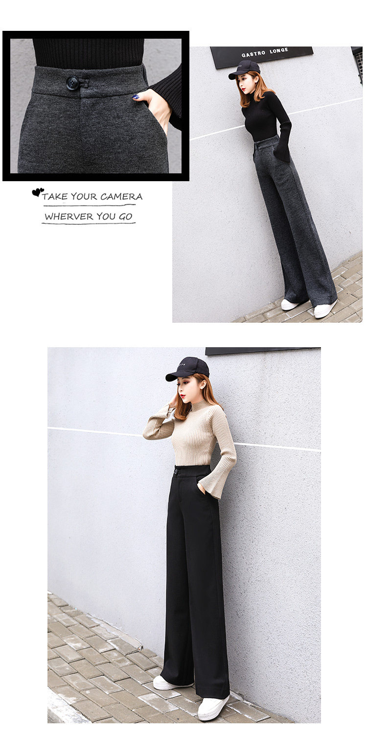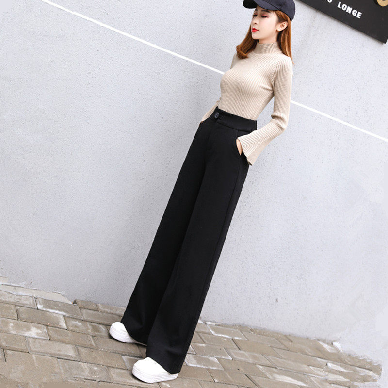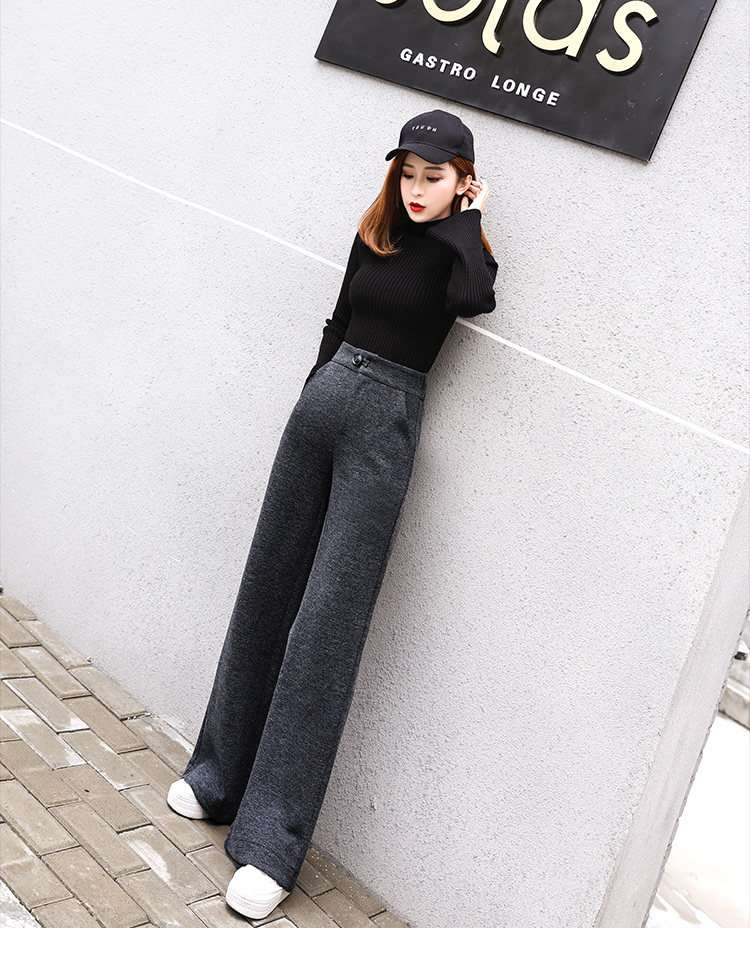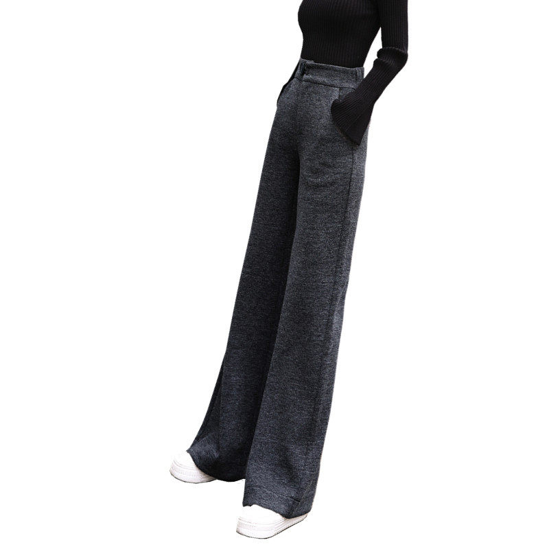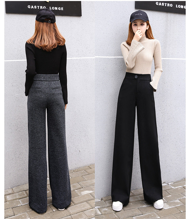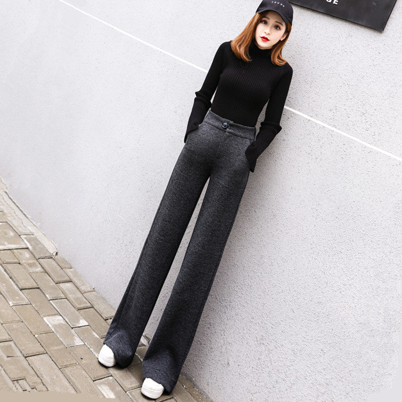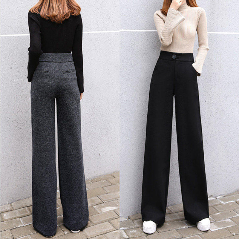 Шерстяные утепленные штаны, демисезонные повседневные брюки, высокая талия, в корейском стиле, свободный прямой крой