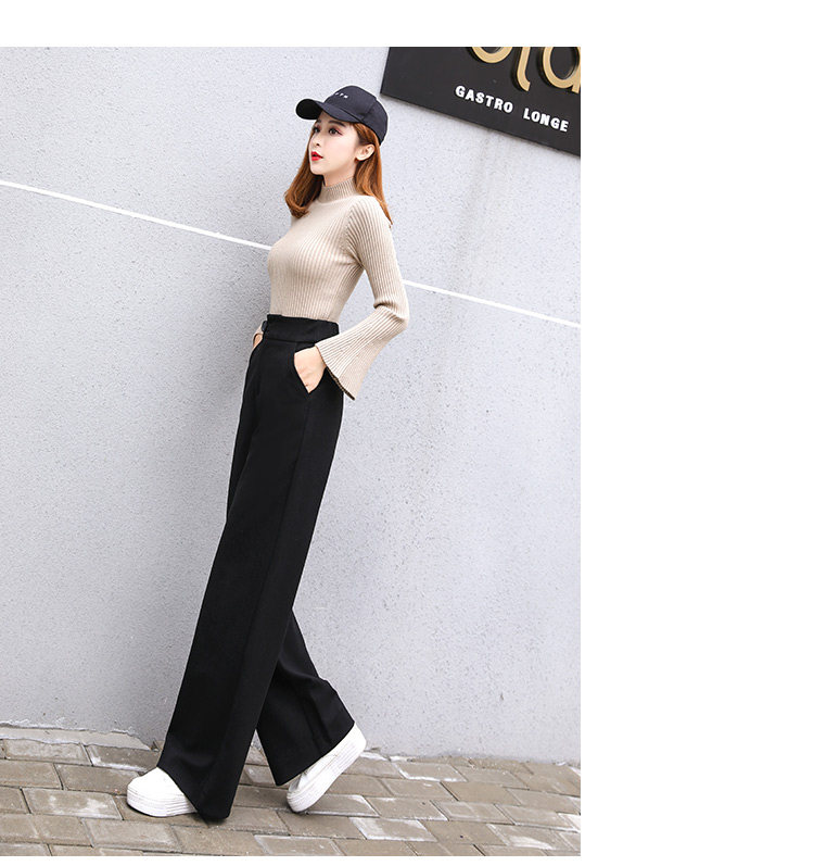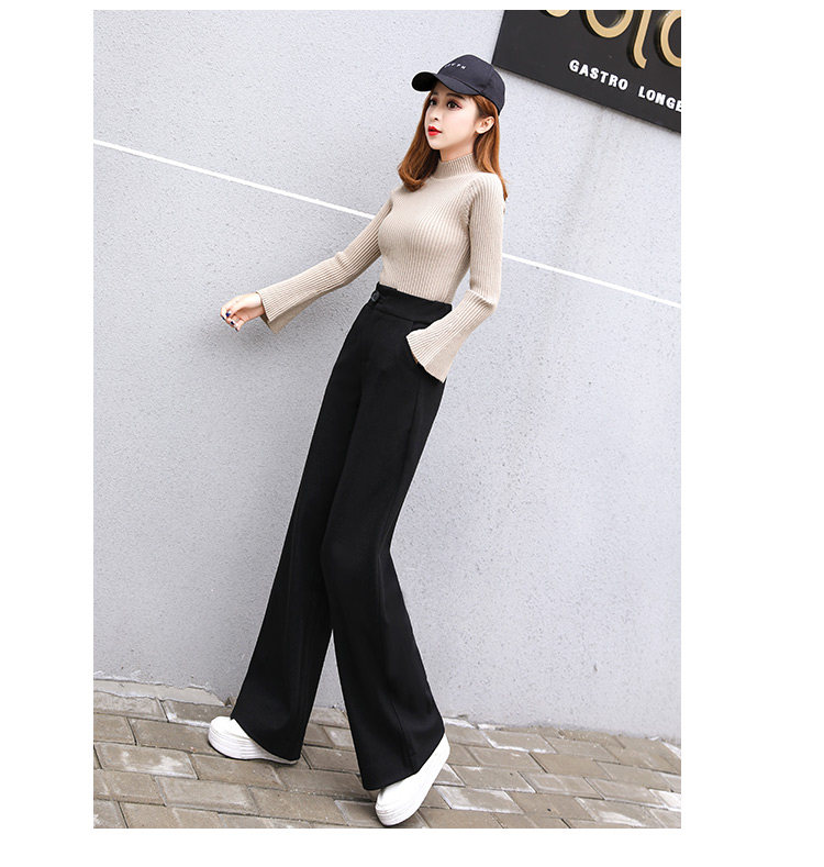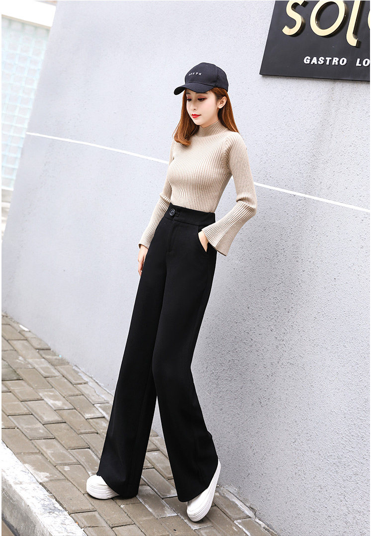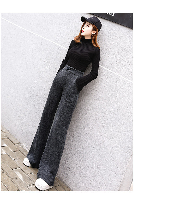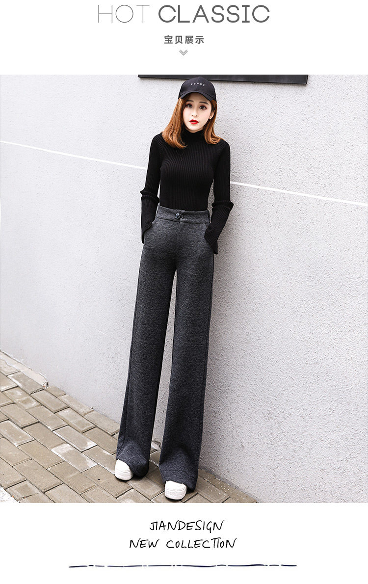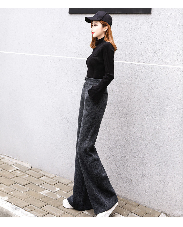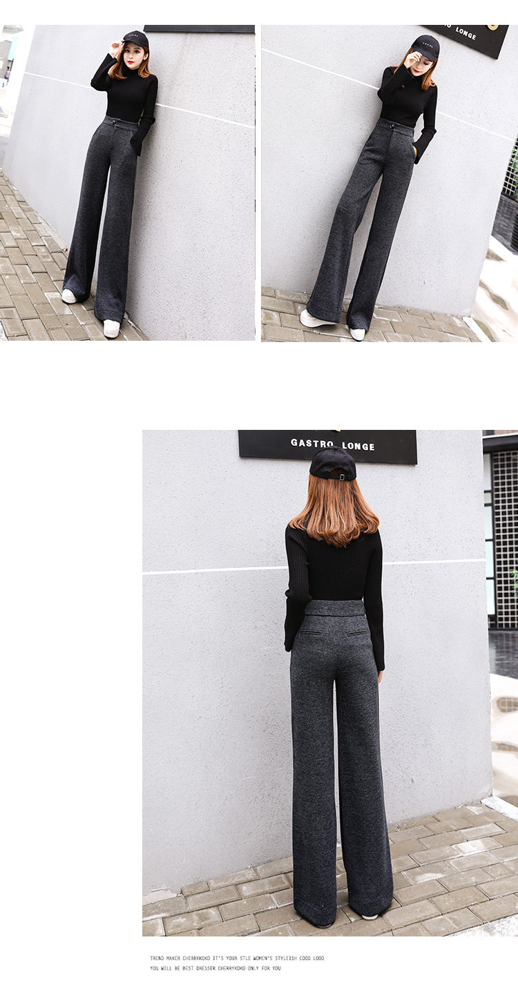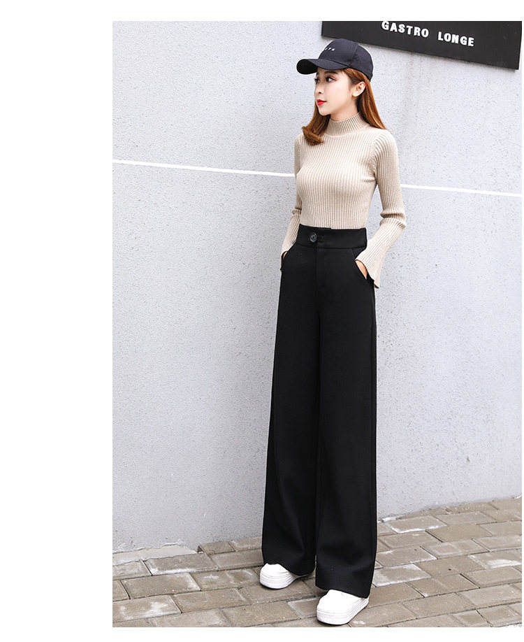 Шерстяные утепленные штаны, демисезонные повседневные брюки, высокая талия, в корейском стиле, свободный прямой крой