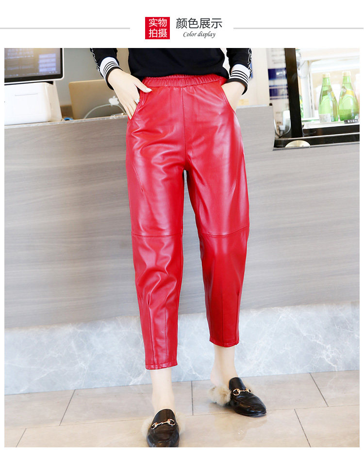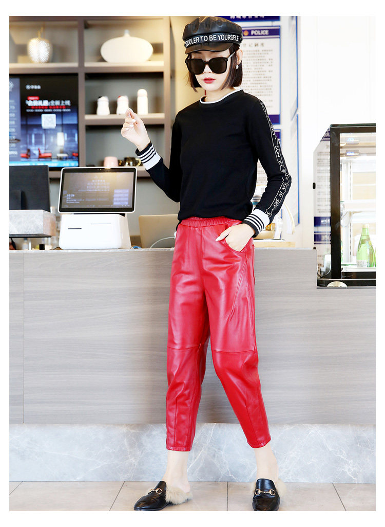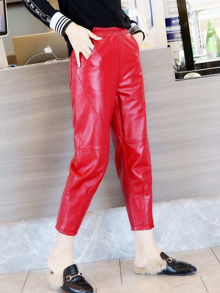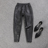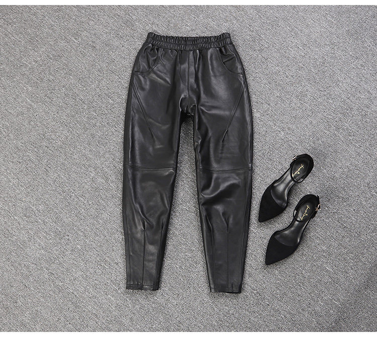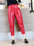 Приталенные штаны, из натуральной кожи, высокая талия