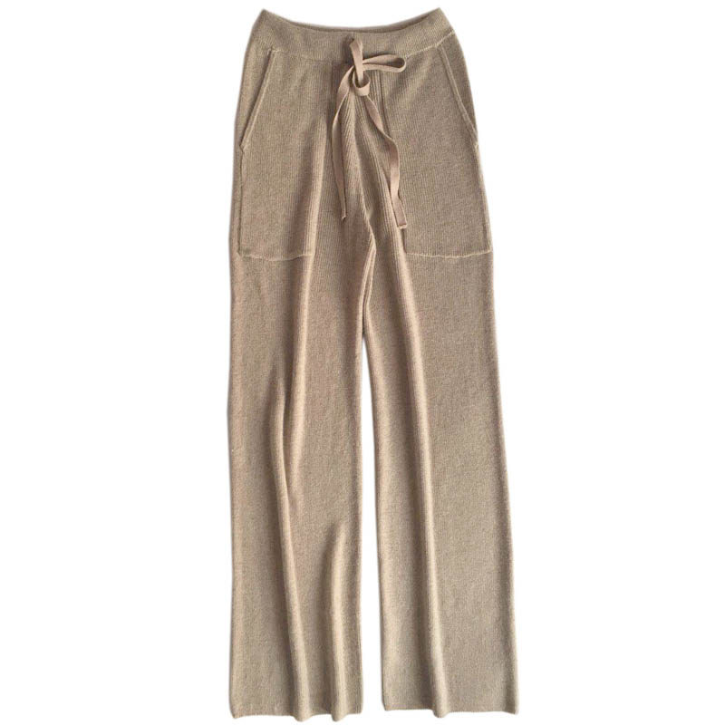 Демисезонные кашемировые трикотажные шерстяные штаны для отдыха, 2019, оверсайз, высокая талия