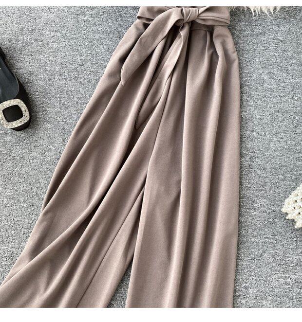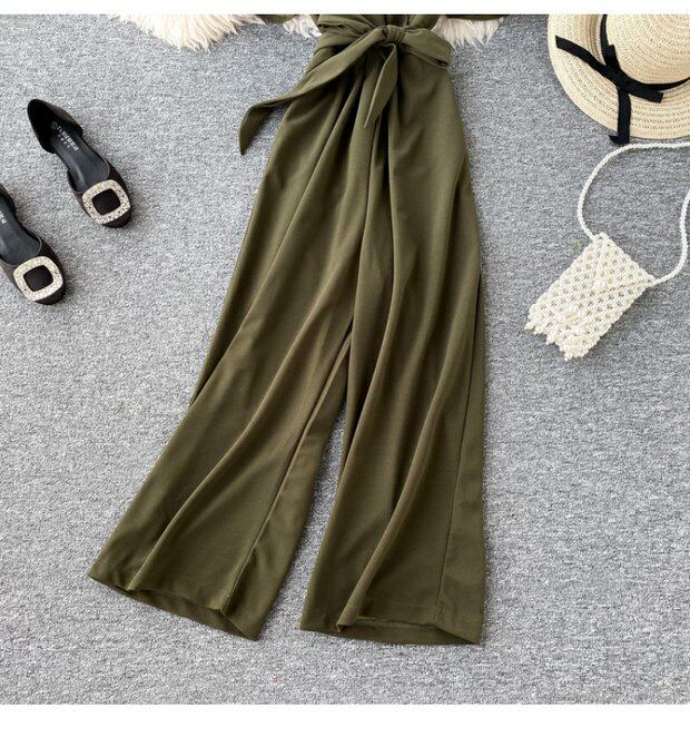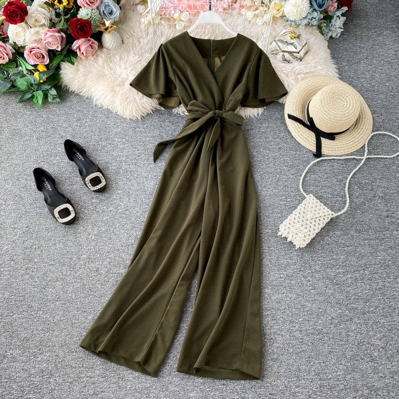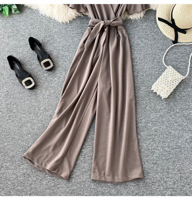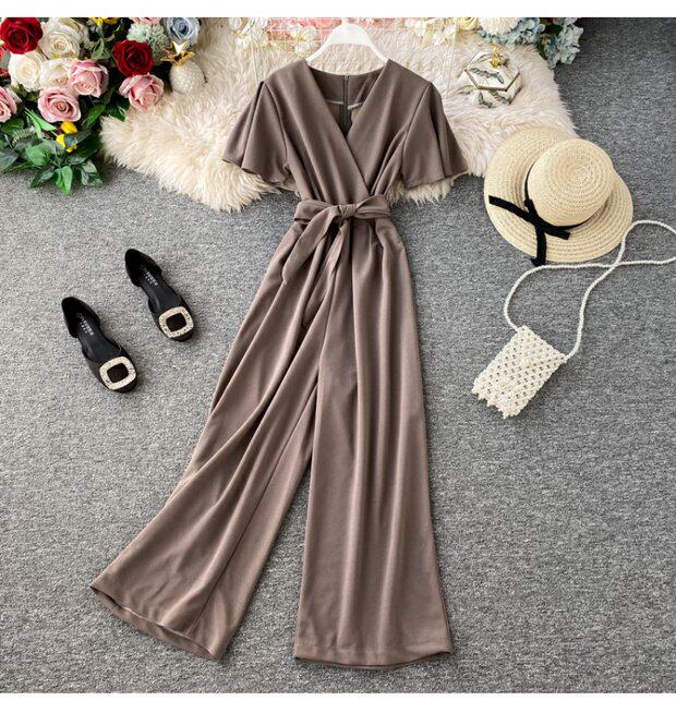 Комбинезон, приталенные штаны, V-образный вырез, короткий рукав, свободный прямой крой, высокая талия, в западном стиле