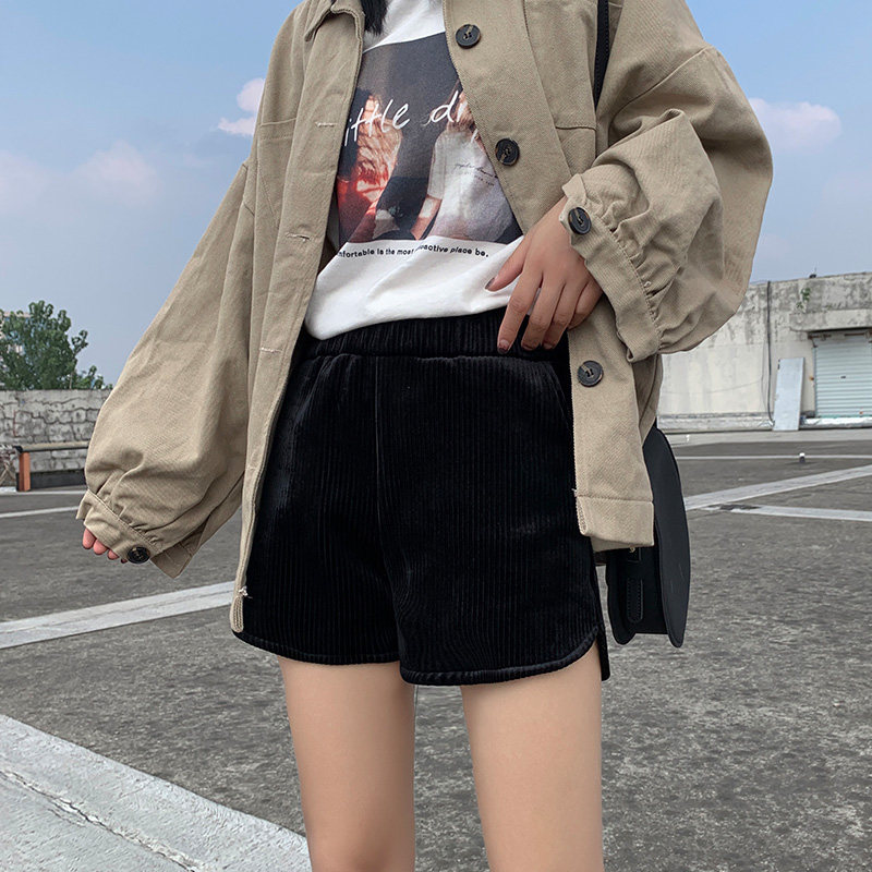 Вельветовые демисезонные шорты, леггинсы, сапоги, флисовые бархатные штаны, 2019, оверсайз, высокая талия