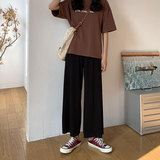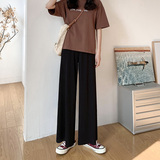 Шелковые тонкие черные штаны для отдыха, высокая талия, по фигуре, свободный прямой крой, подходит для подростков