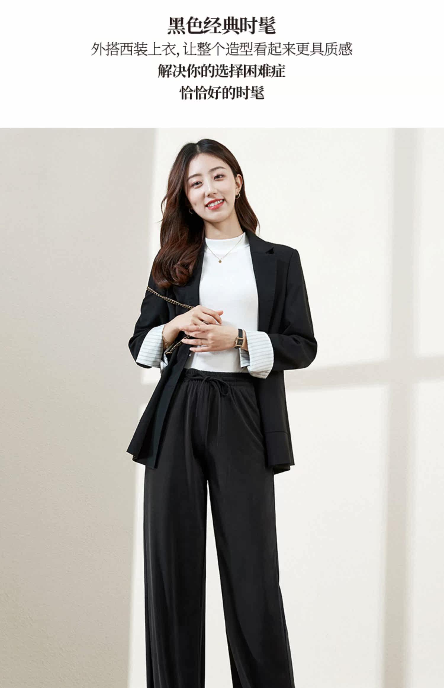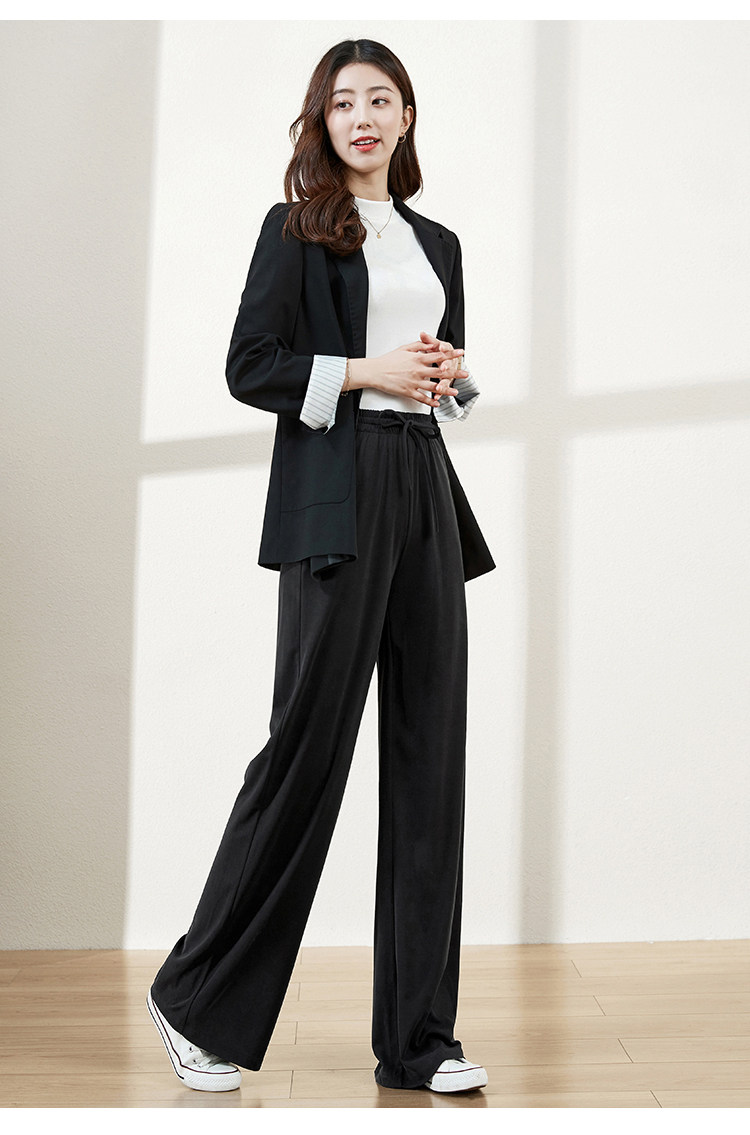 Черный костюм, осенние штаны, свободный прямой крой, коллекция 2021