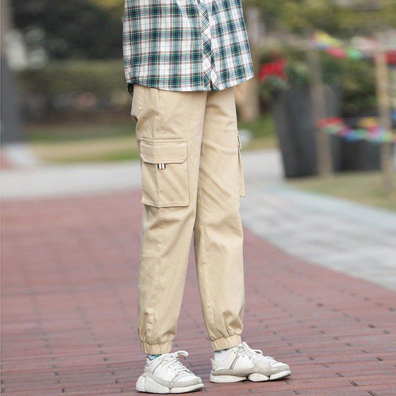 Осенние штаны для школьников для отдыха, для средней школы, в корейском стиле, оверсайз, свободный крой