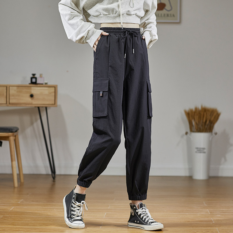 Весенние черные штаны для отдыха, в корейском стиле, высокая талия