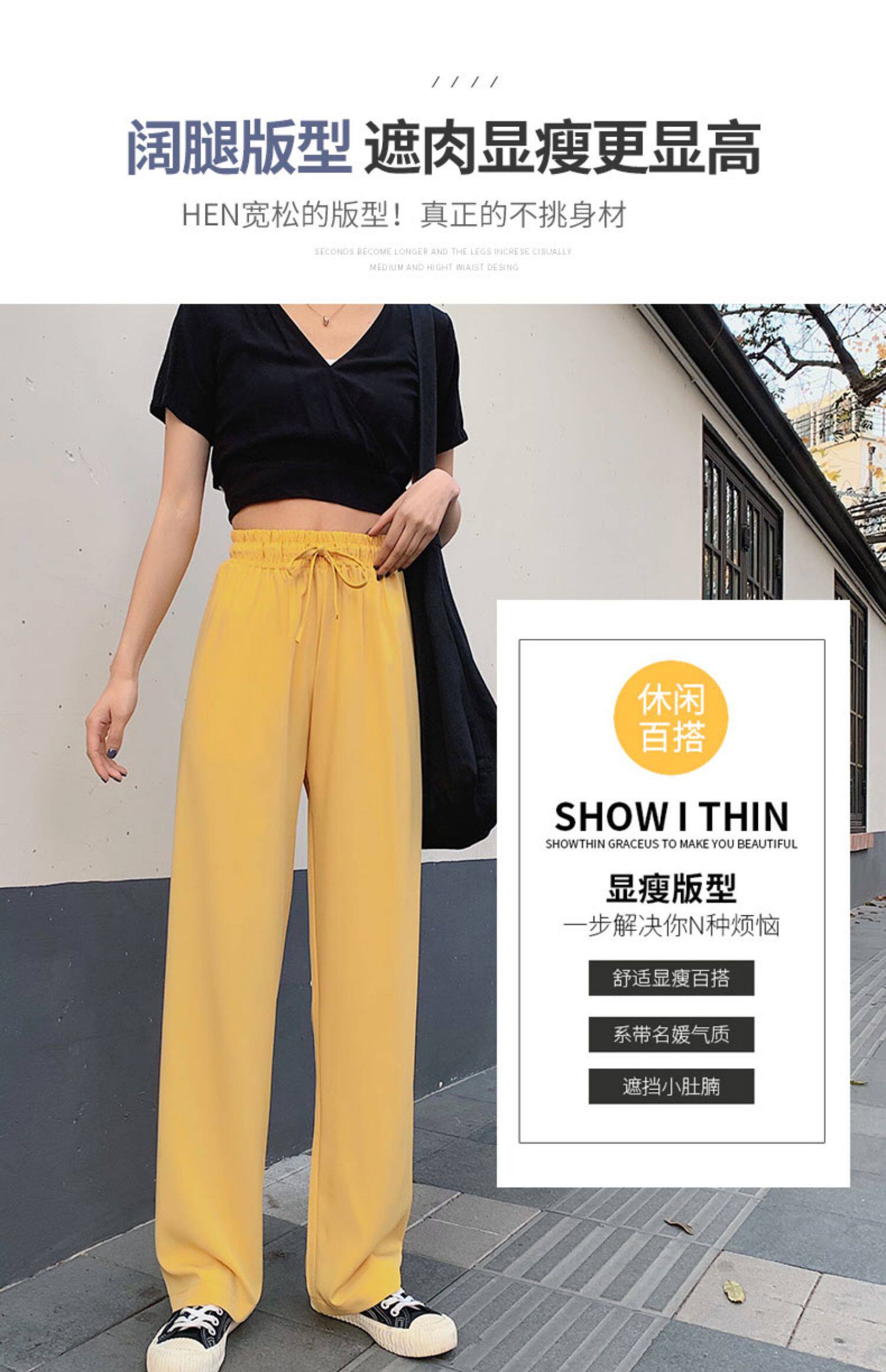 Шифоновые тонкие штаны, высокая талия, по фигуре, в корейском стиле, подходит для подростков, свободный прямой крой