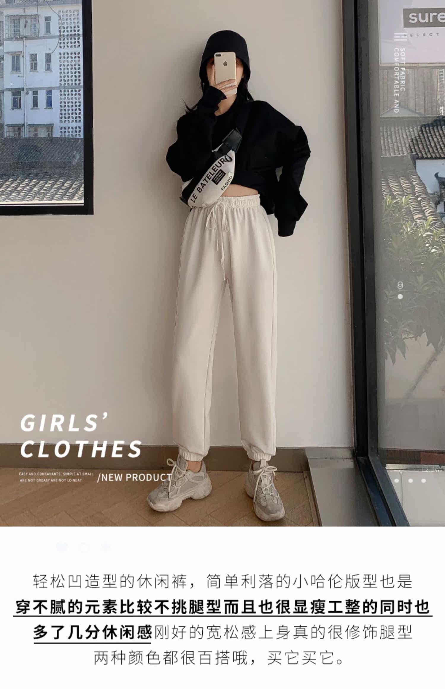 Tide, белые штаны, леггинсы, пуховик для отдыха, свободный крой, 2020, в корейском стиле