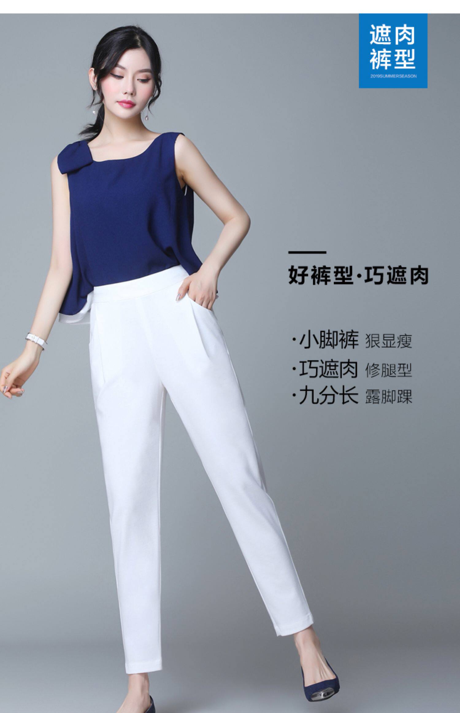 Тонкие штаны, белый костюм, высокая талия, большой размер