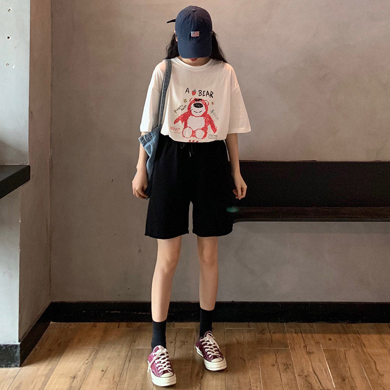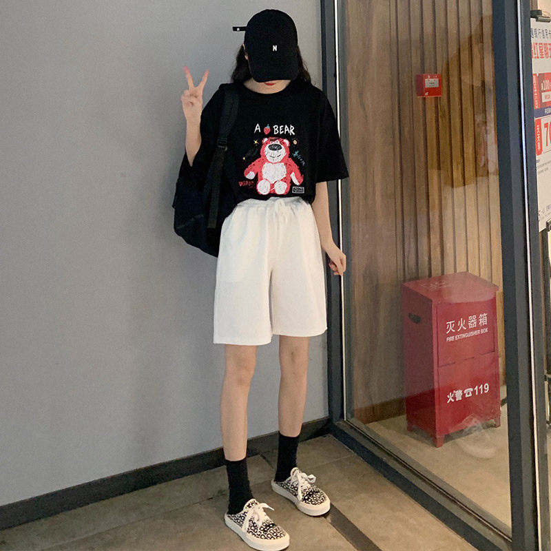 Спортивные летние шорты, штаны для отдыха для школьников, высокая талия, оверсайз, свободный прямой крой