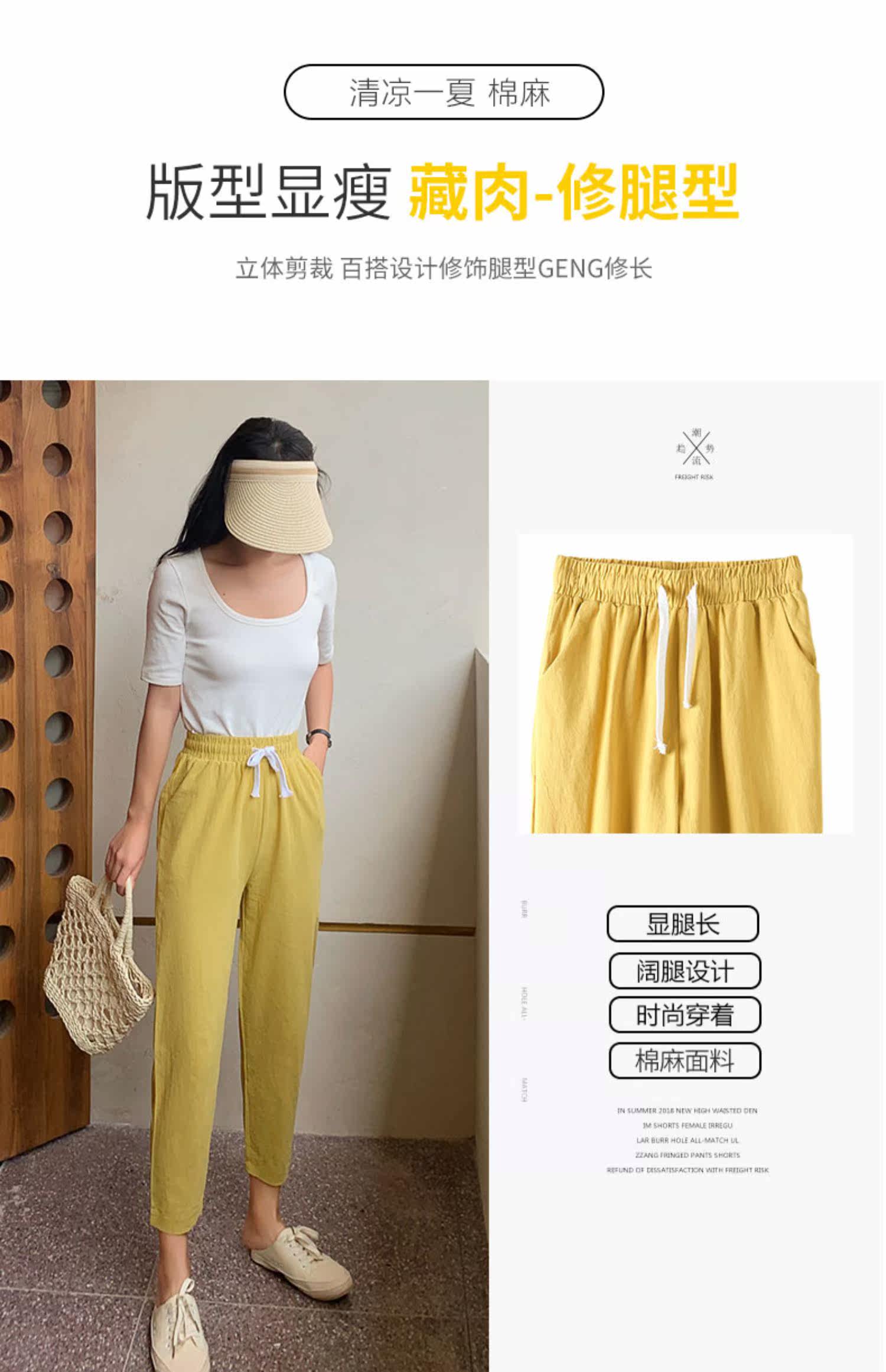 Тонкие штаны, из хлопка и льна, оверсайз, большой размер, в корейском стиле