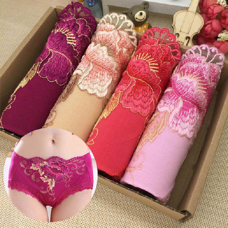 Сексуальное нижнее белье, штаны, оберег на день рождения, трусы, 4 шт, средняя посадка, с вышивкой