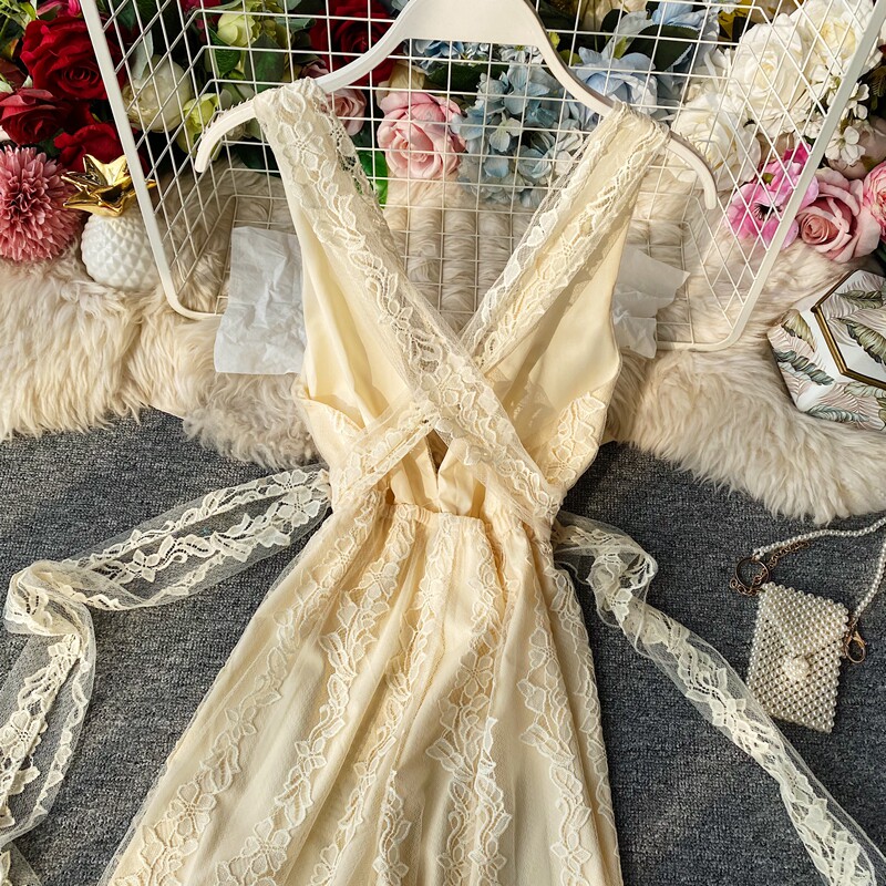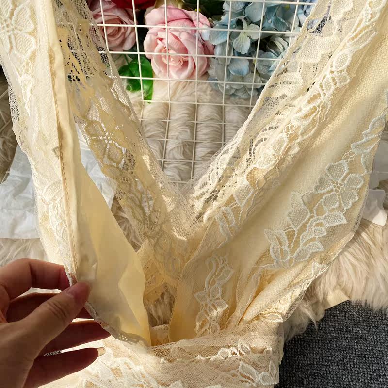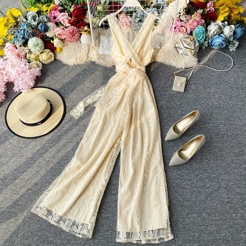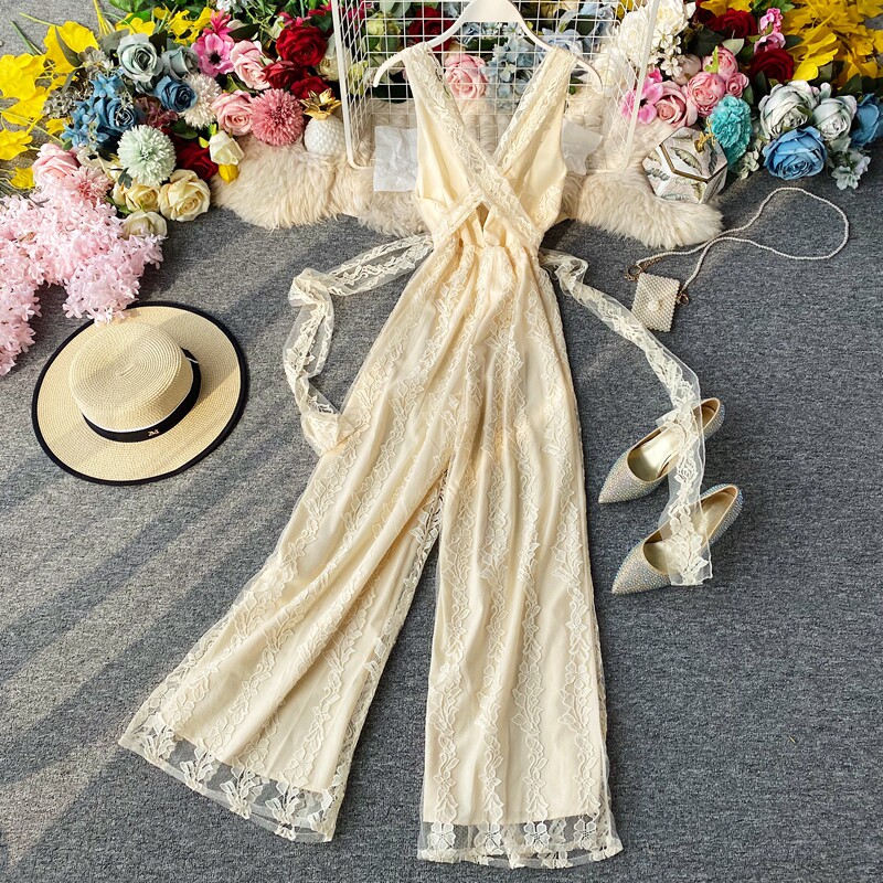 Кружевной комбинезон, сексуальное платье-комбинация, штаны, высокая талия, V-образный вырез, с открытой спиной