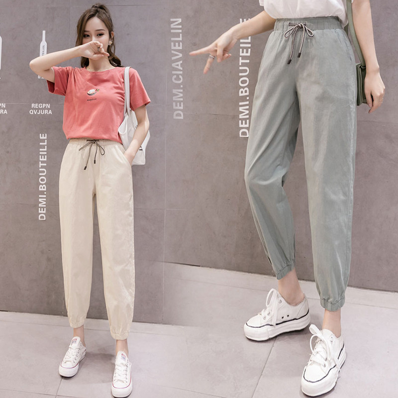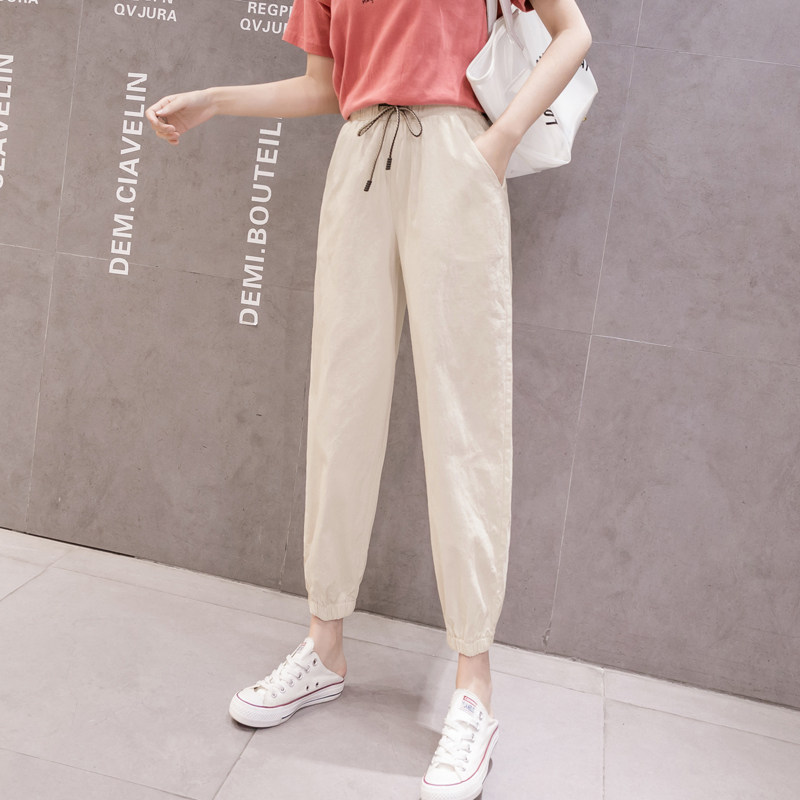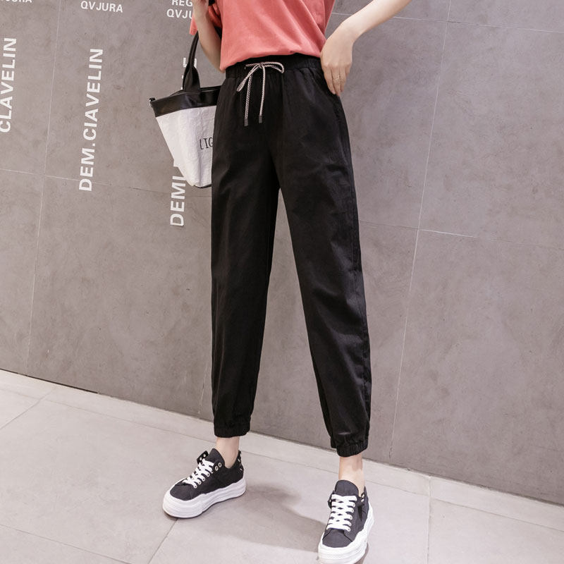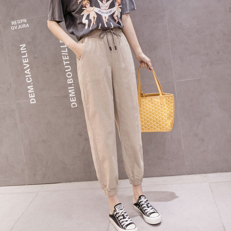 Летние штаны, свободный крой, из хлопка и льна