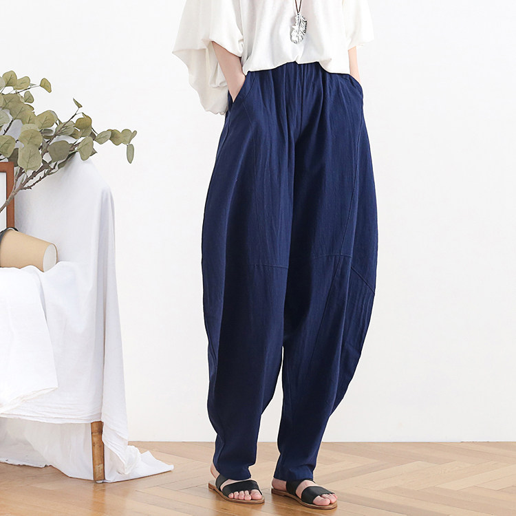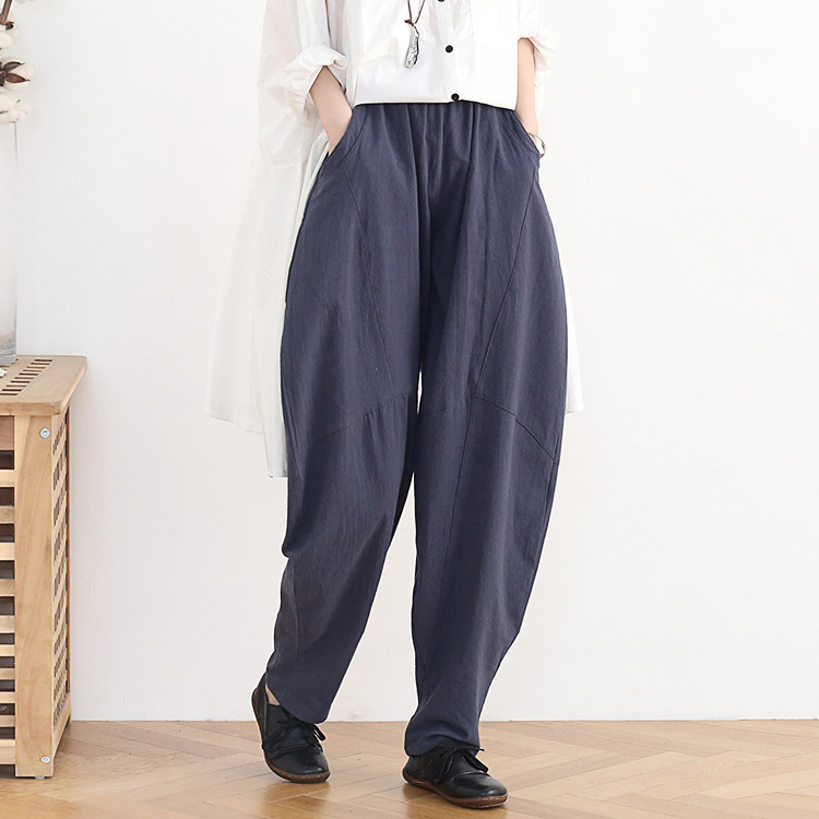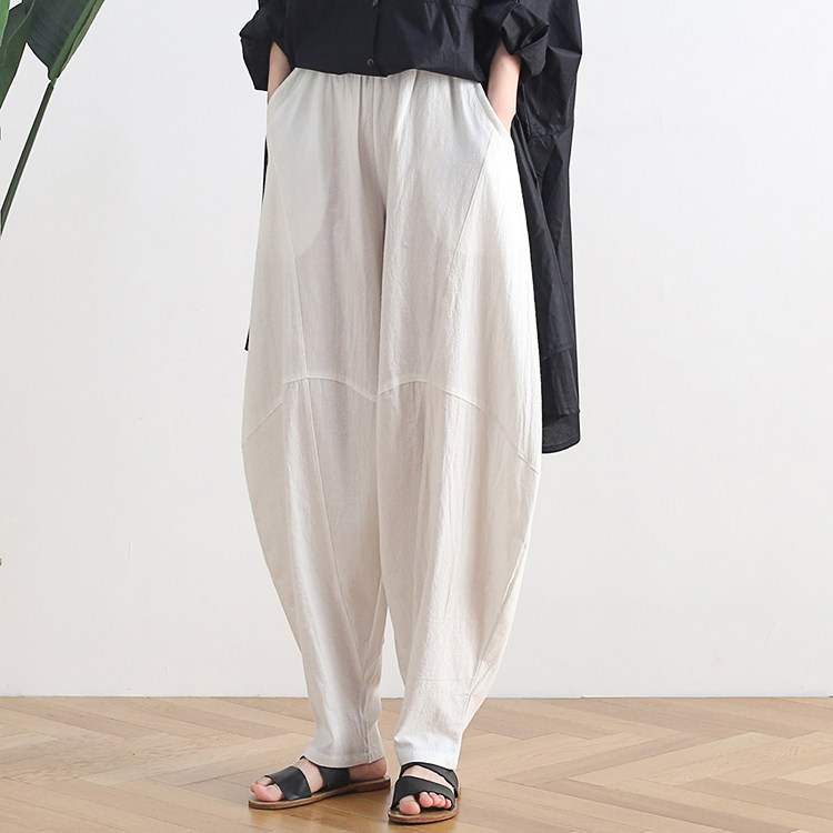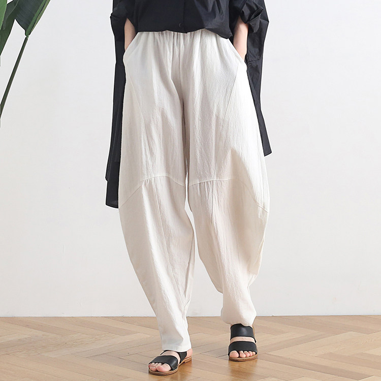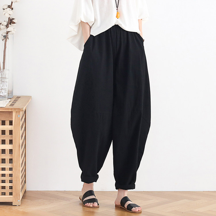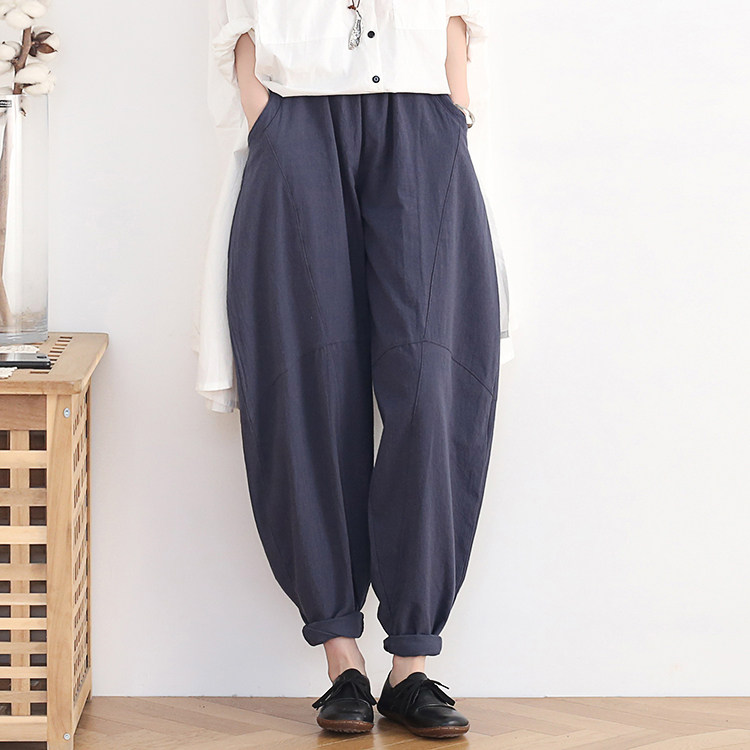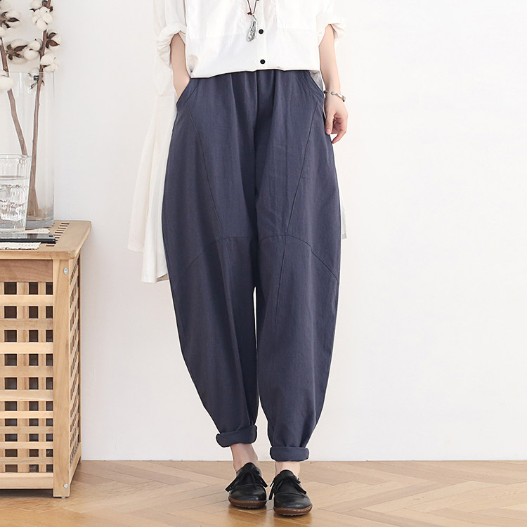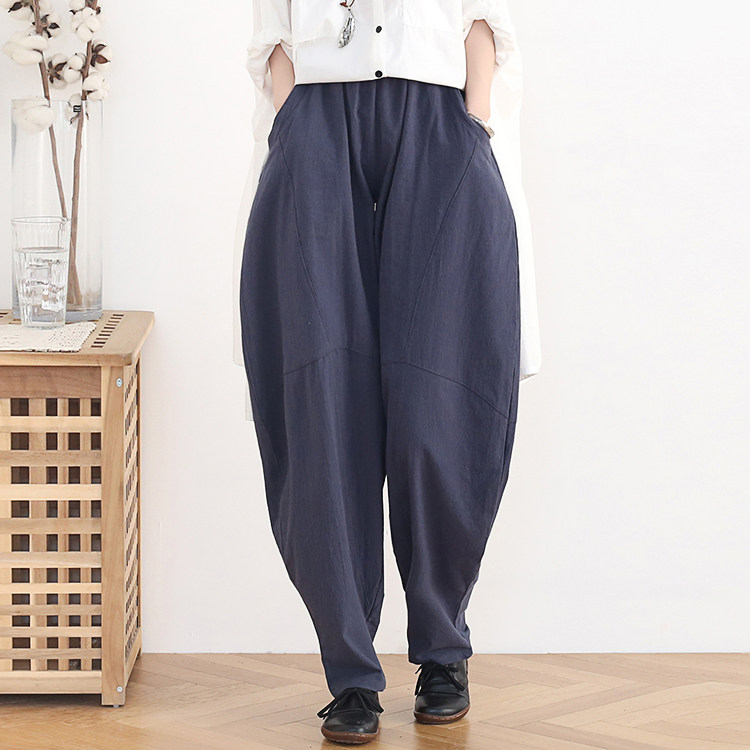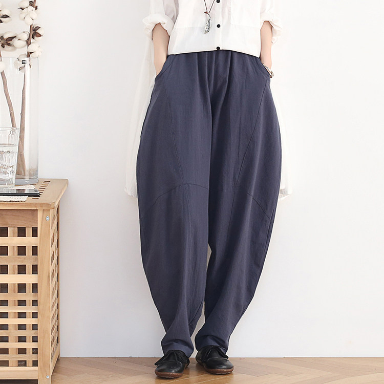 Фонарь, осенние леггинсы, ретро штаны, свободный крой, высокая талия, из хлопка и льна