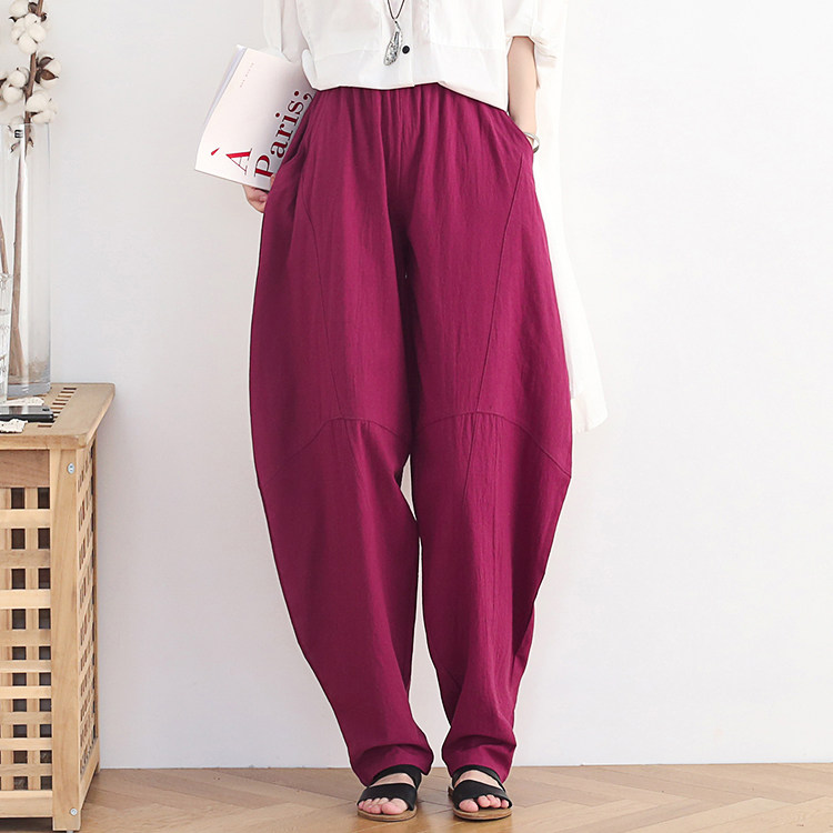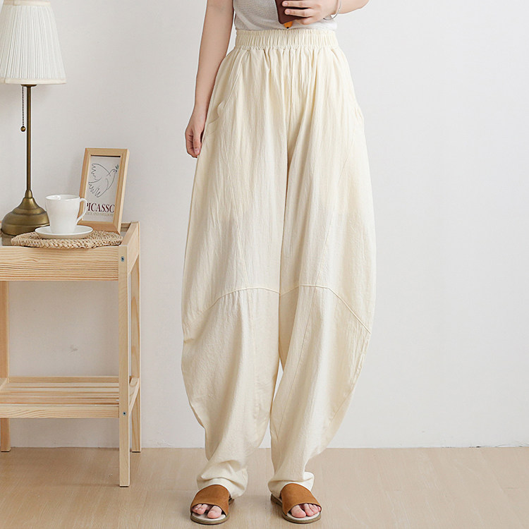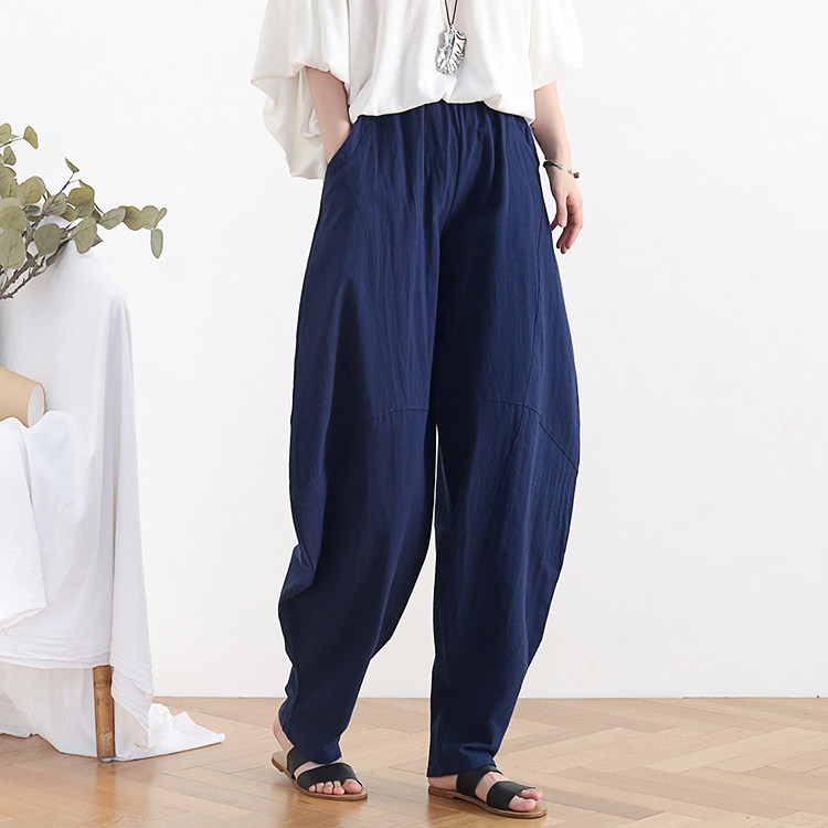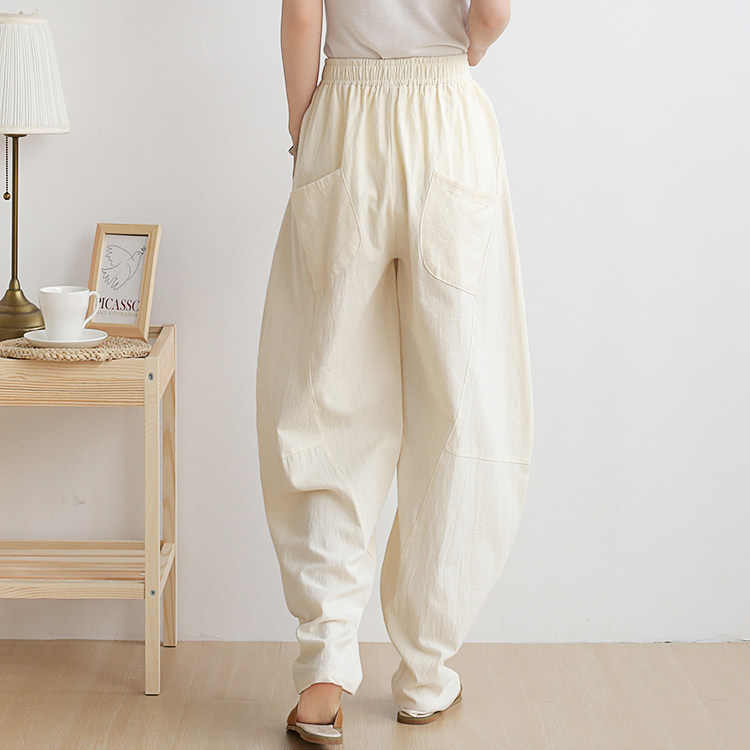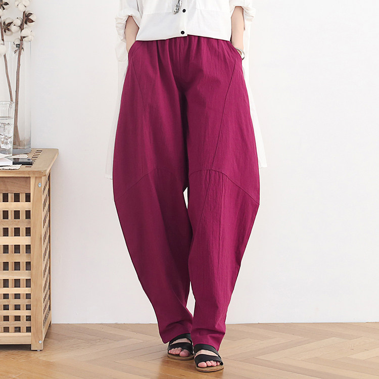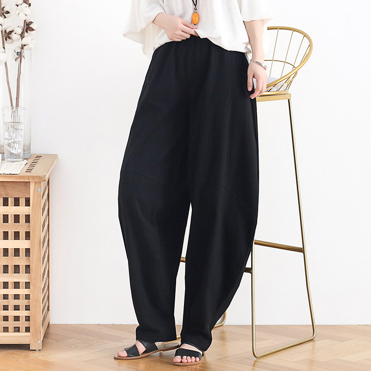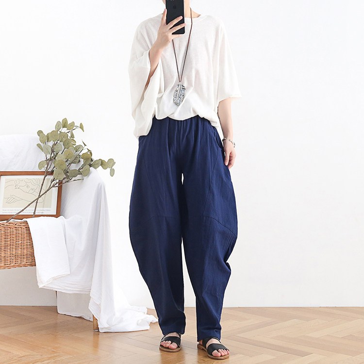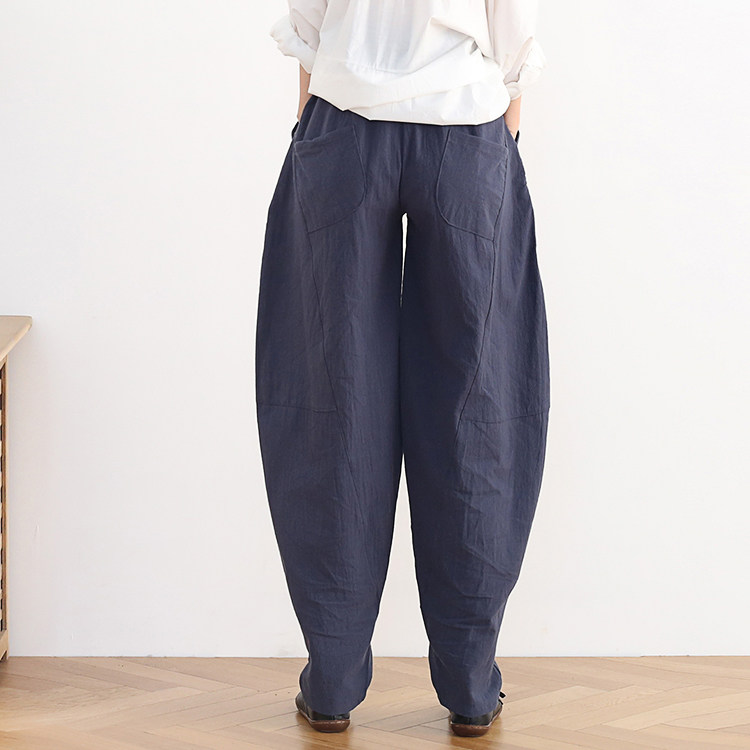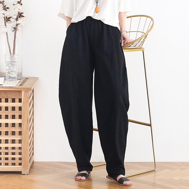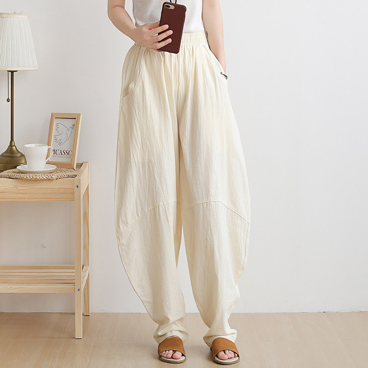 Фонарь, осенние леггинсы, ретро штаны, свободный крой, высокая талия, из хлопка и льна