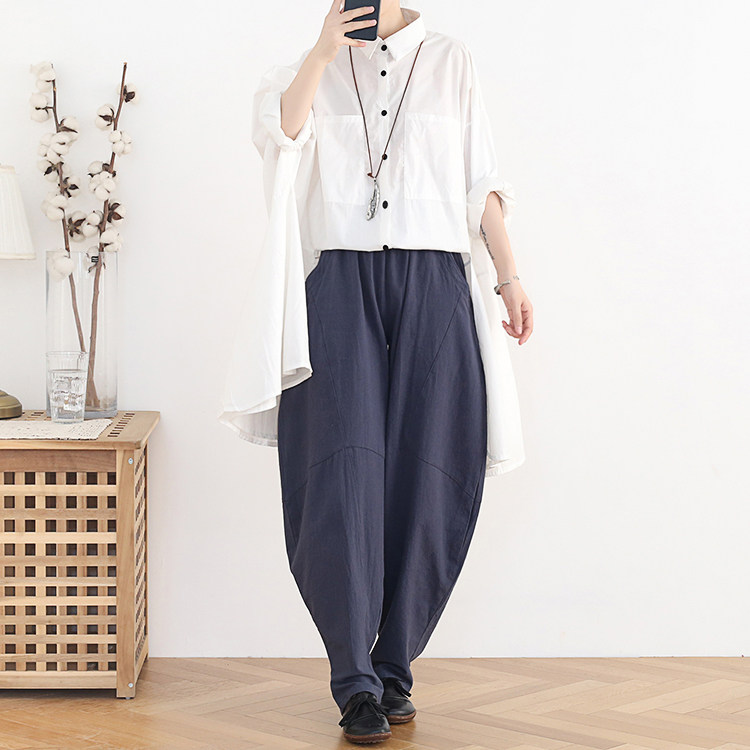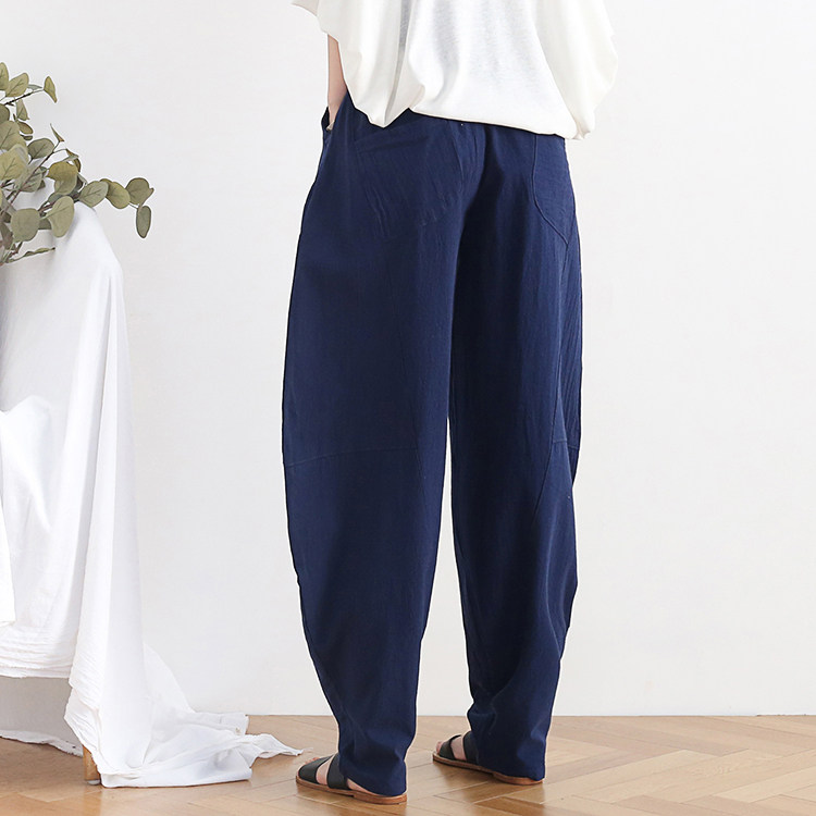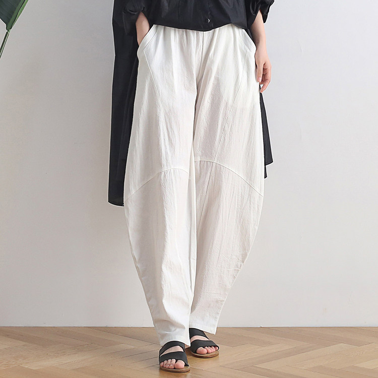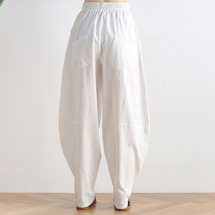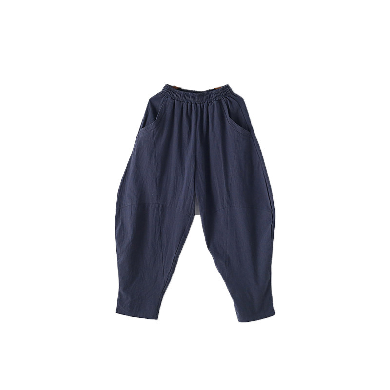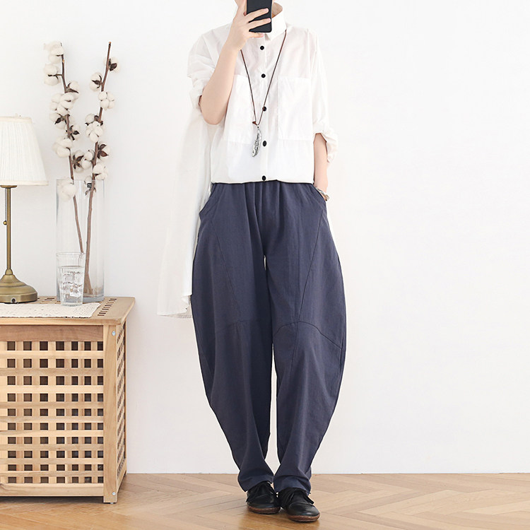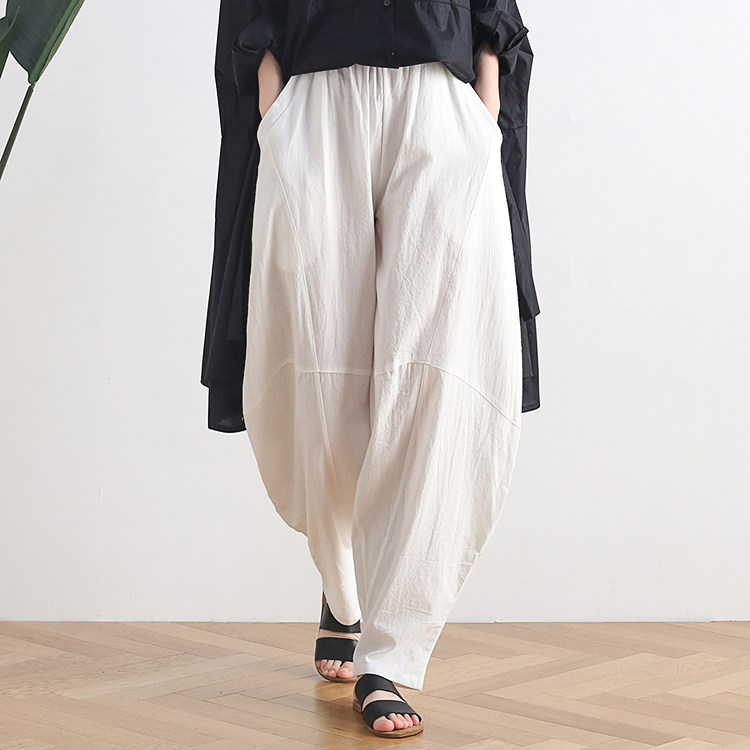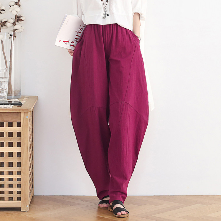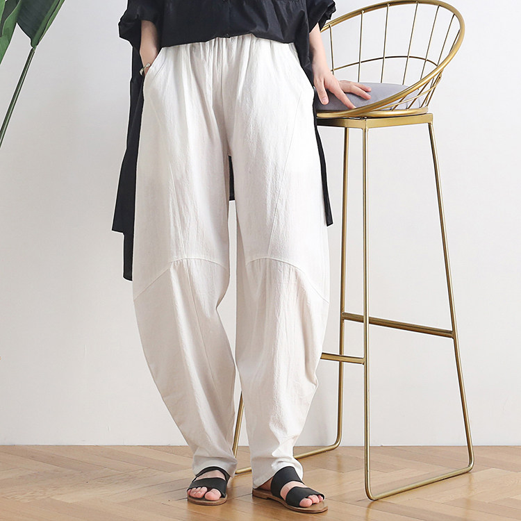 Фонарь, осенние леггинсы, ретро штаны, свободный крой, высокая талия, из хлопка и льна