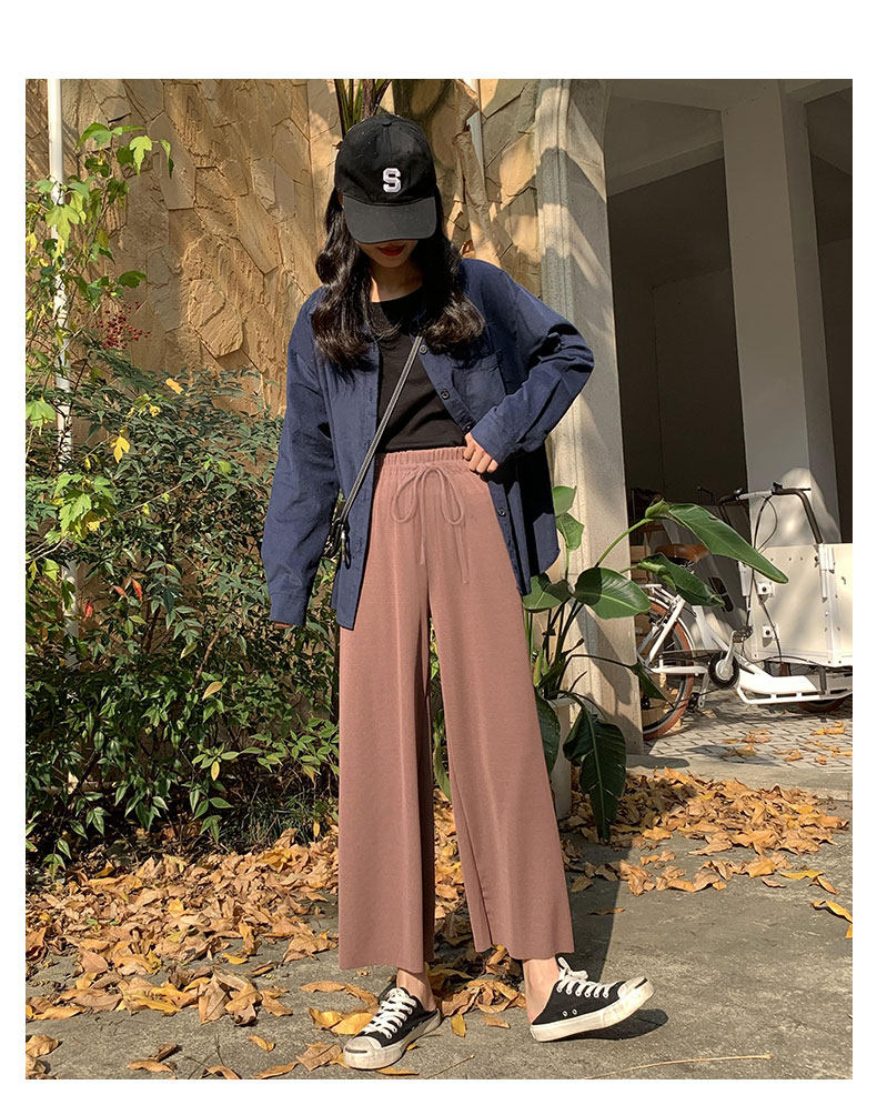 Шелковые тонкие осенние штаны для отдыха, высокая талия, свободный прямой крой, подходит для подростков