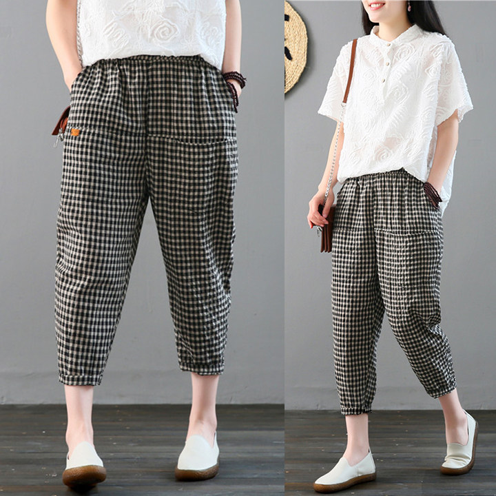 Штаны, летняя одежда для отдыха, большой размер, коллекция 2021, эластичная талия