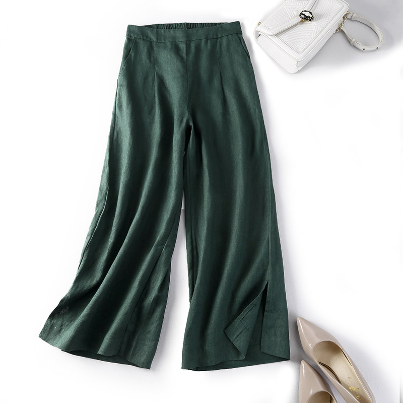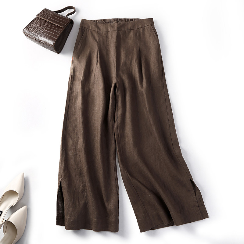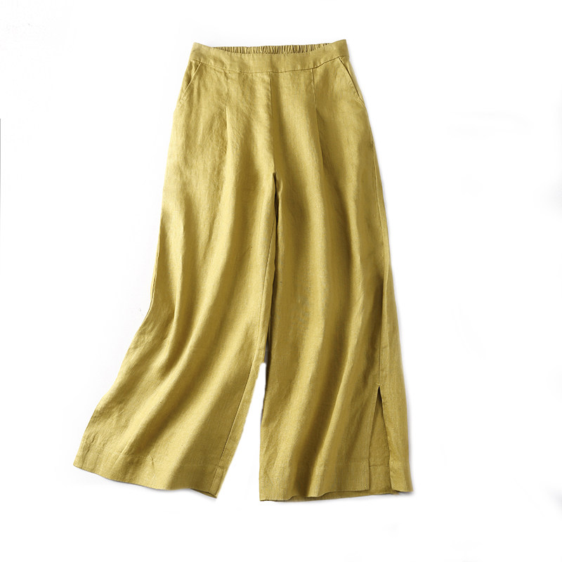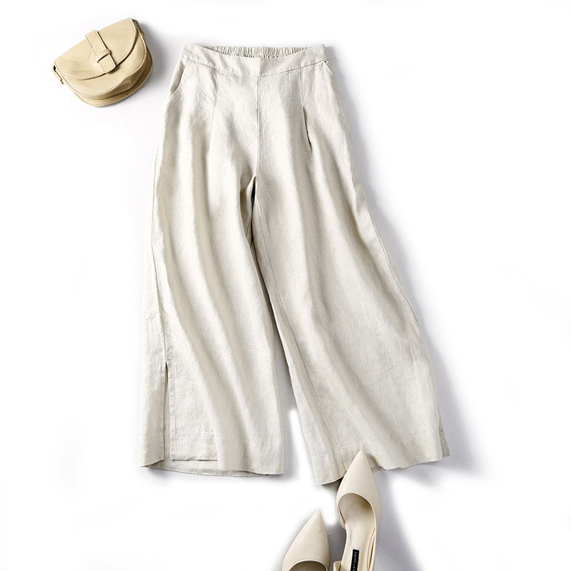 Летние штаны, из хлопка и льна, большой размер, свободный прямой крой, высокая талия, сезон 2021