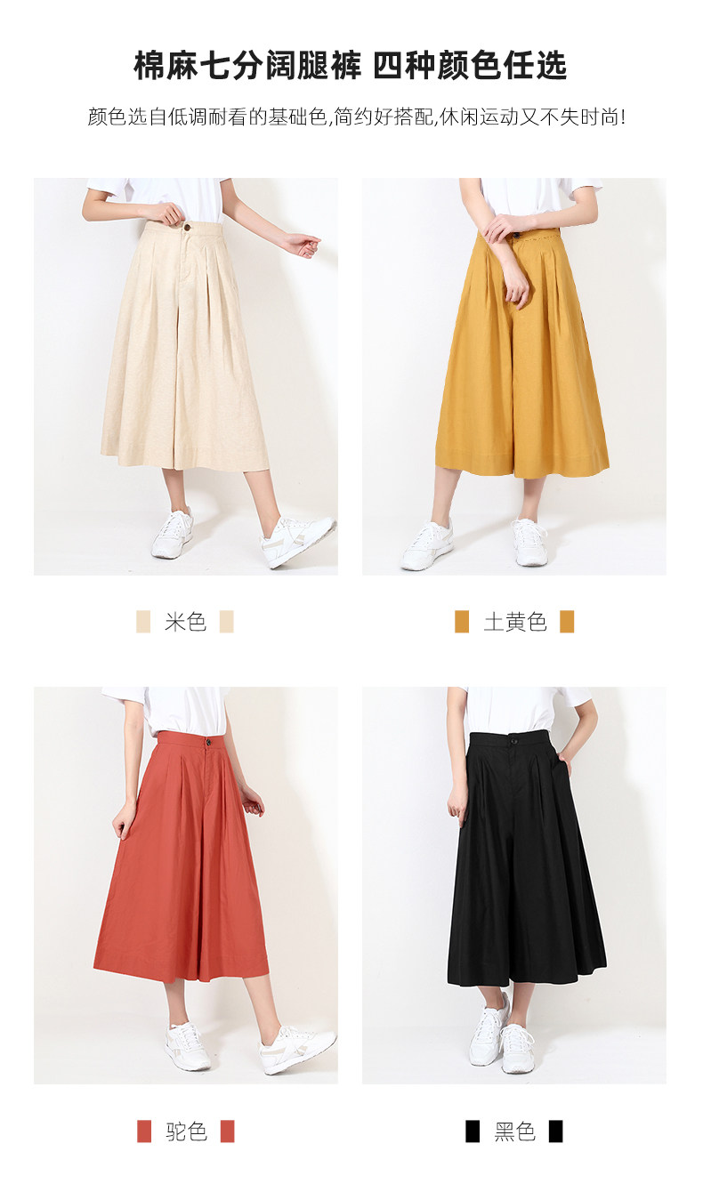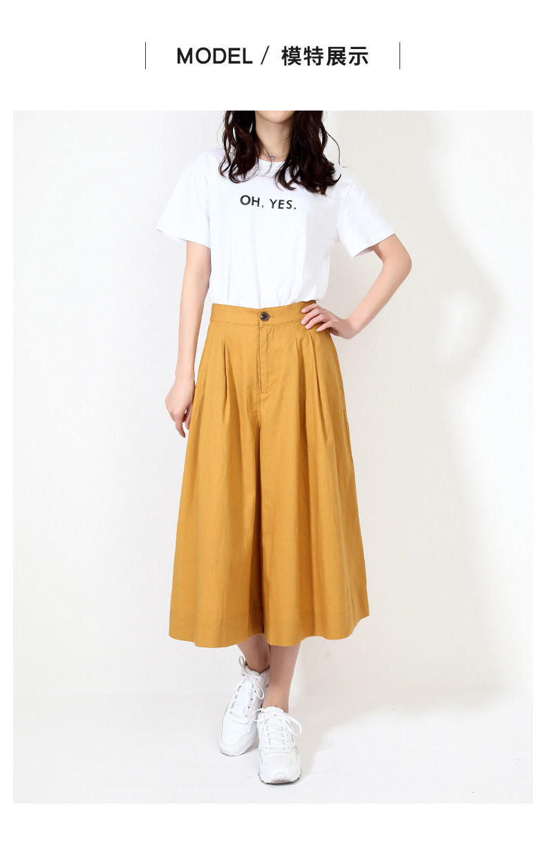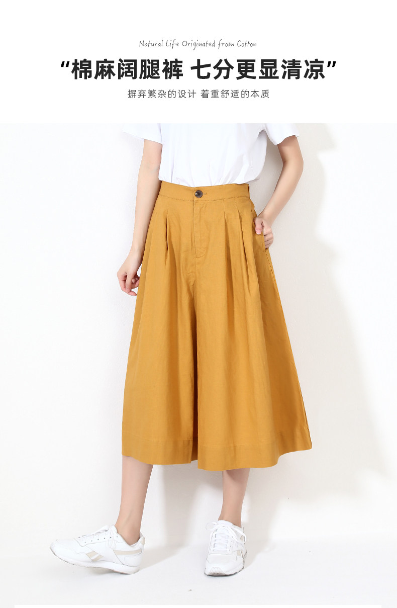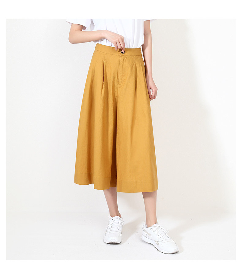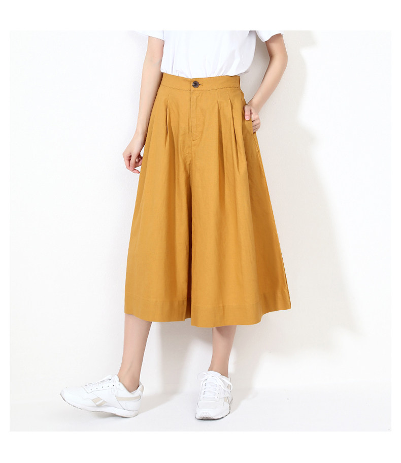 Юбка, штаны для отдыха, пряжка, из хлопка и льна, оверсайз, высокая талия