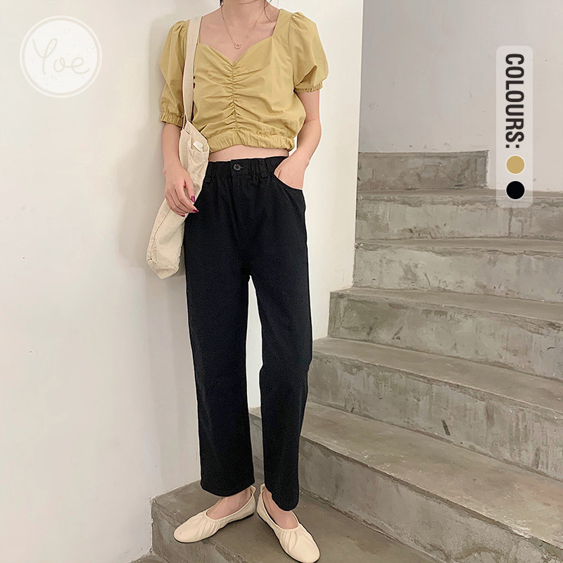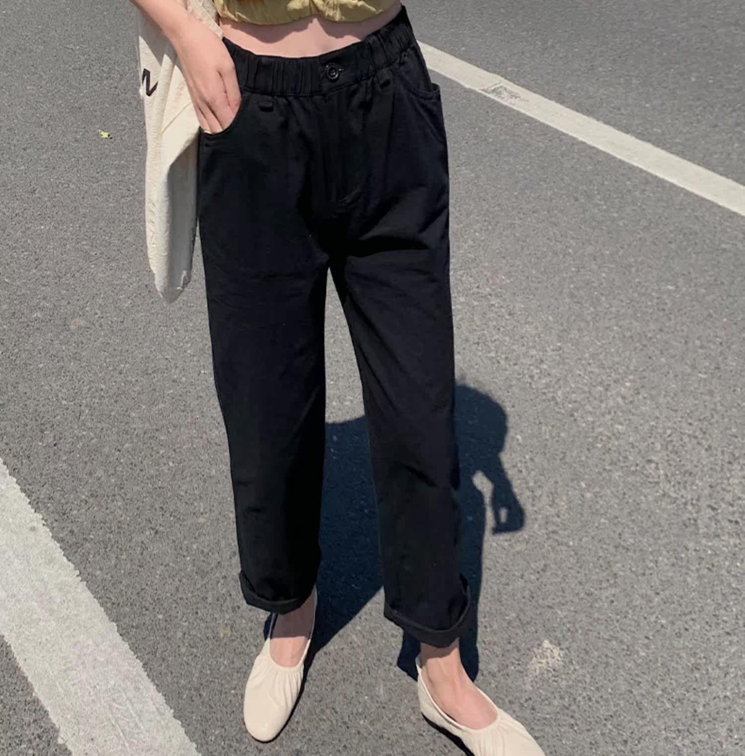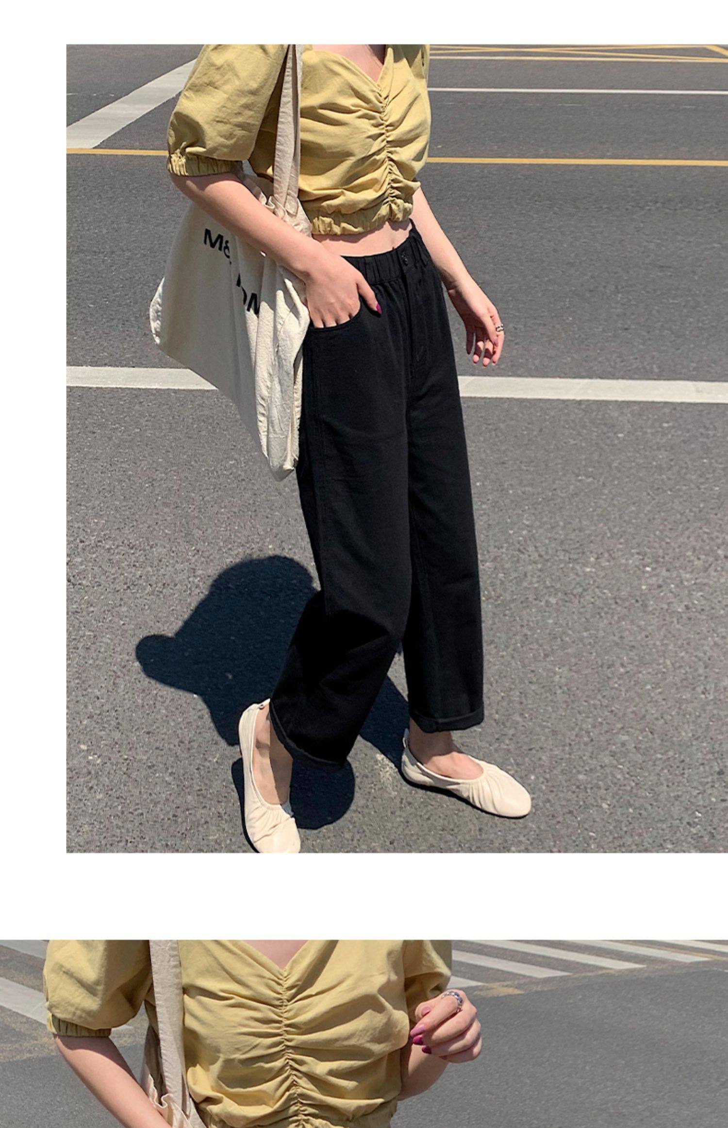 Летние черные штаны, высокая талия, коллекция 2021, свободный прямой крой, стройный силуэт