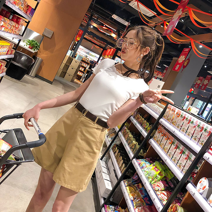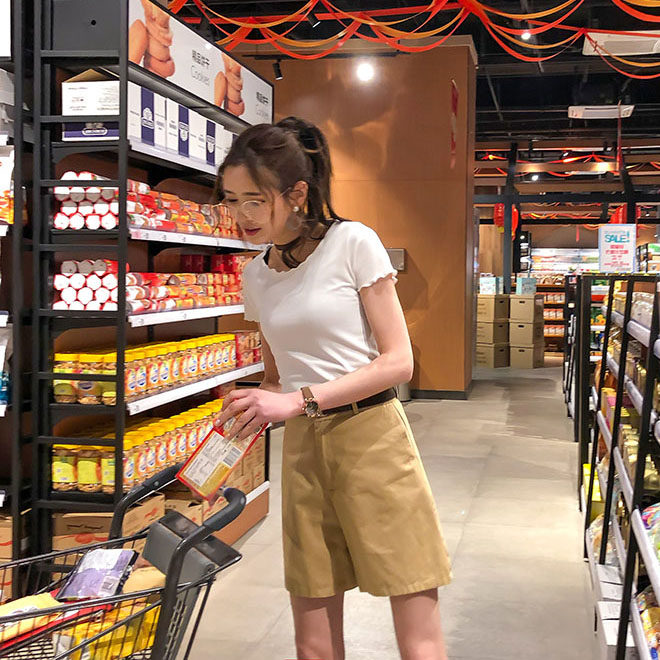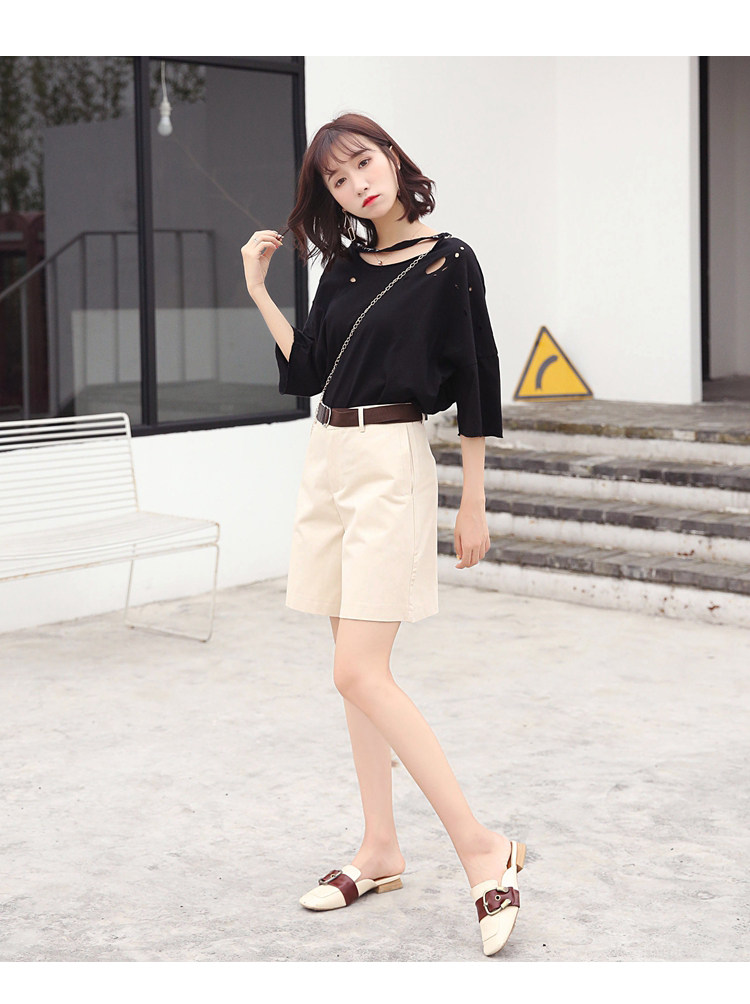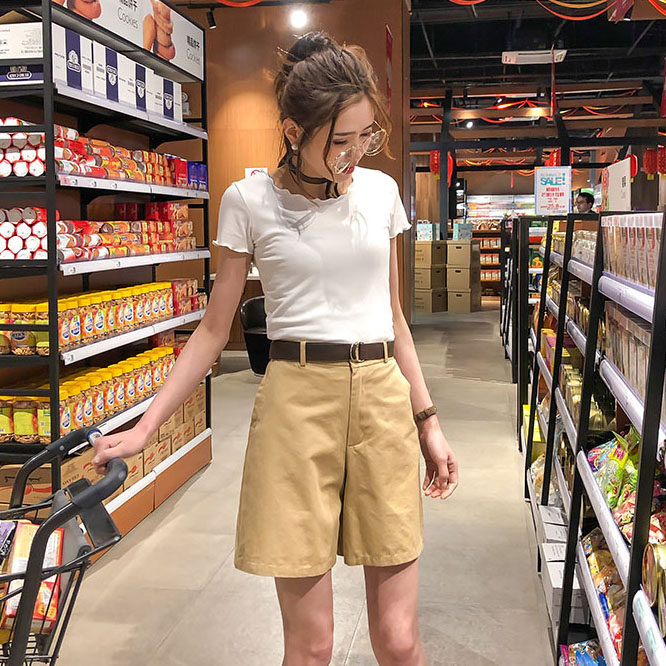Шорты, штаны, костюм, высокая талия, свободный прямой крой
