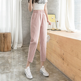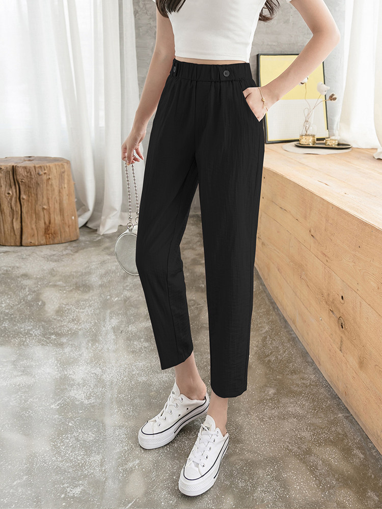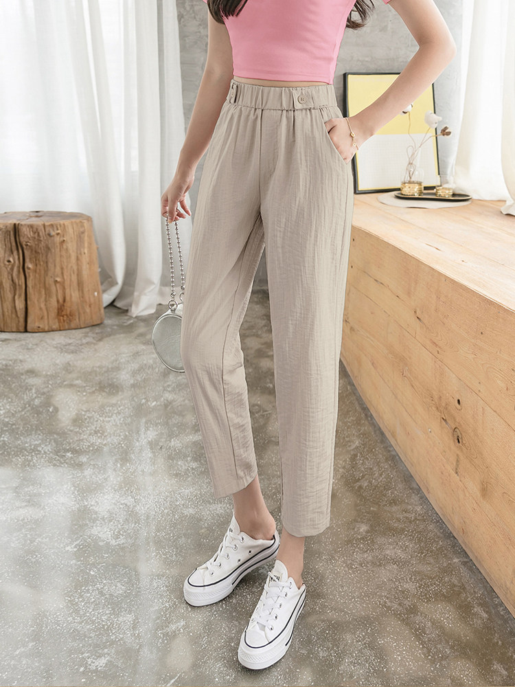 Шелковые тонкие штаны, эластичная талия, из хлопка и льна, оверсайз, по фигуре, подходят для подростков, свободный прямой крой