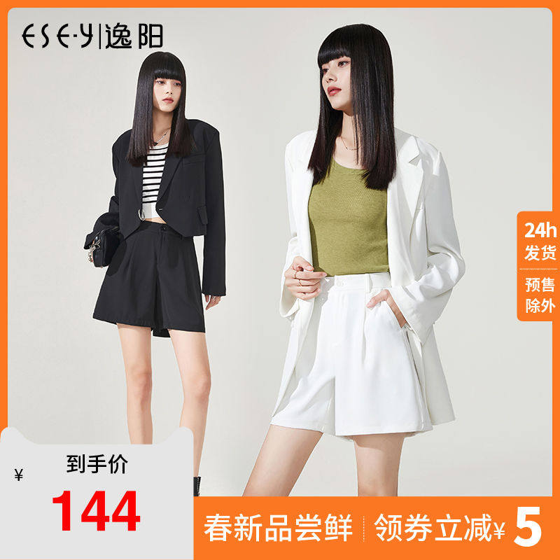 Белый пиджак классического кроя, шорты, тонкие штаны, коллекция 2022, высокая талия, оверсайз