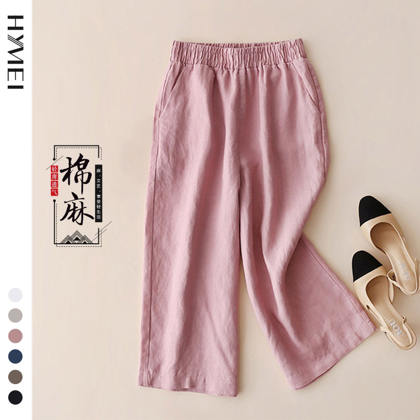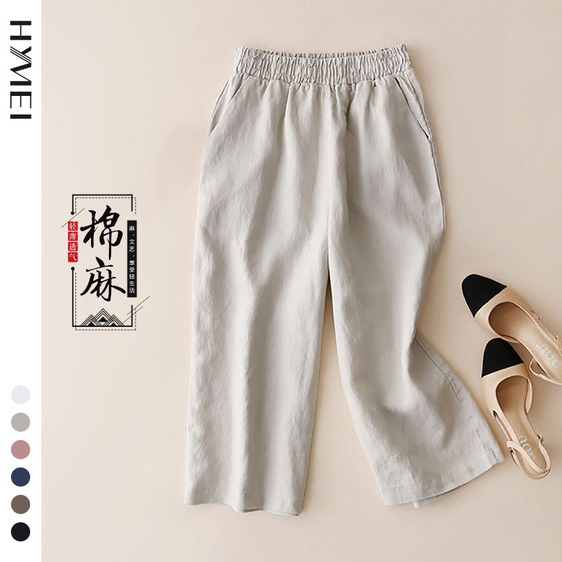 Тонкие штаны, из хлопка и льна, подходят для подростков, свободный прямой крой, высокая талия, большой размер