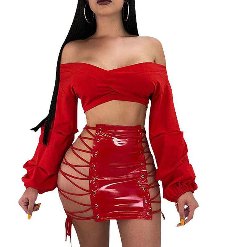 Служба с короткой юбкой с завязкой PU