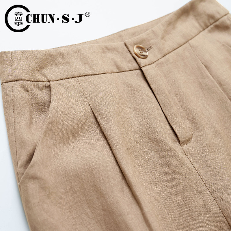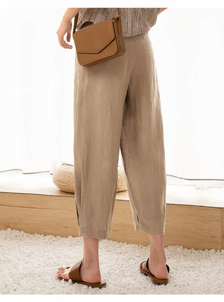Тонкие штаны, по фигуре, свободный крой, из хлопка и льна, высокая талия