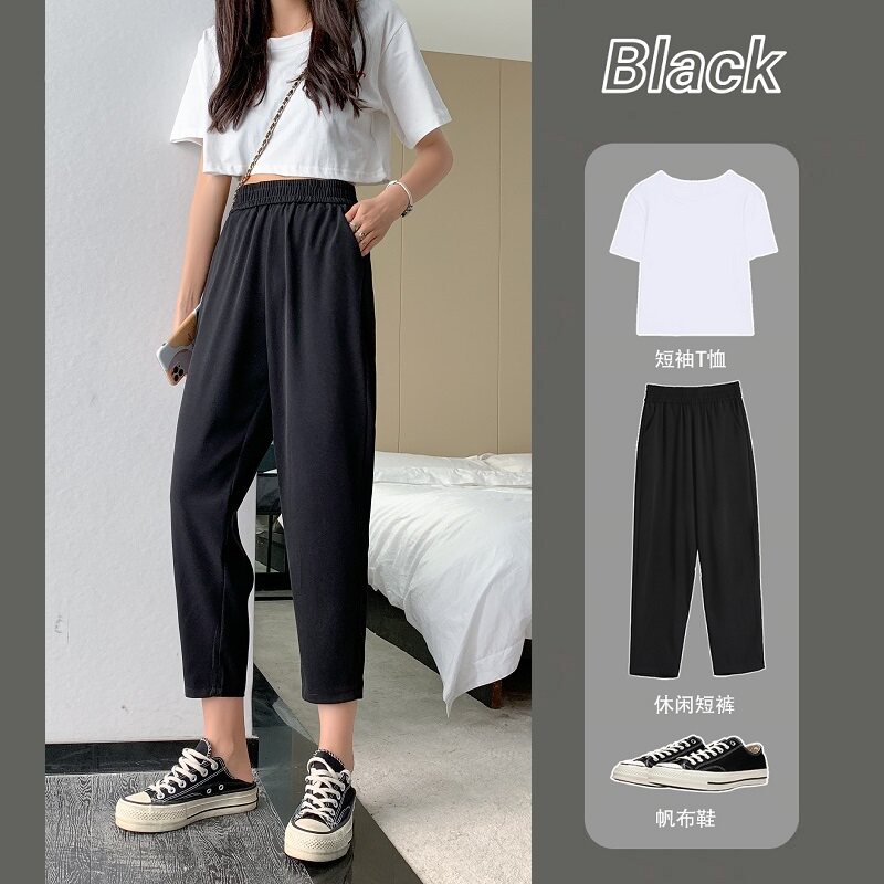 Летние тонкие штаны, большой размер, свободный крой, высокая талия