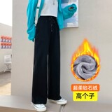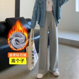 Демисезонные утепленные бархатные штаны для отдыха, высокая талия, свободный прямой крой, оверсайз