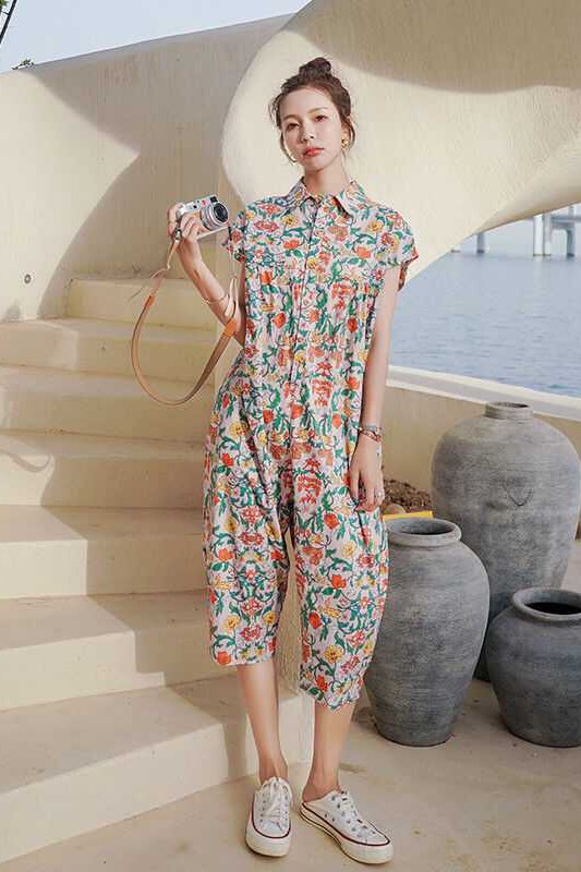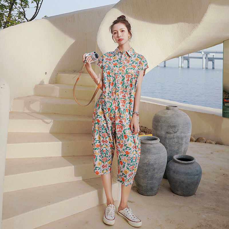 Модные цветочные комбинезоны Женщины Женщины летние свободные комбинезоны платья