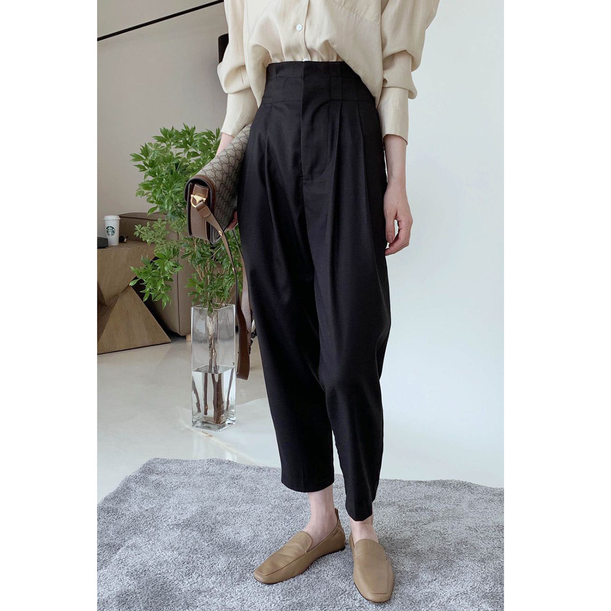 Осенние приталенные штаны, костюм, высокая талия