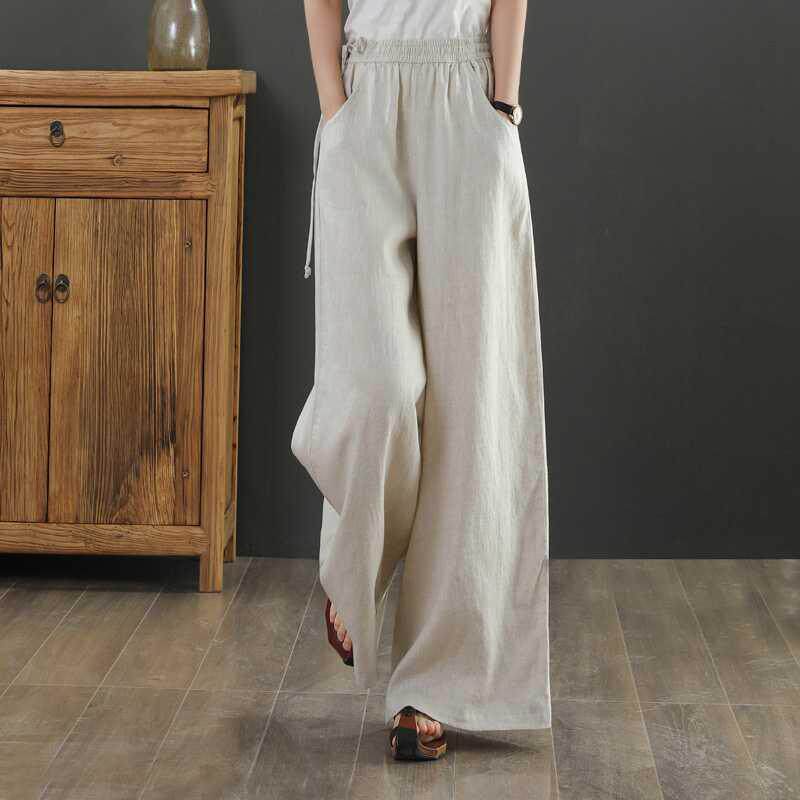 Брендовые весенние летние штаны, высокая талия, из хлопка и льна