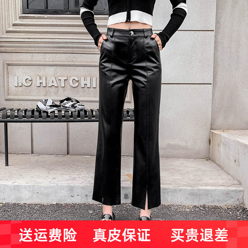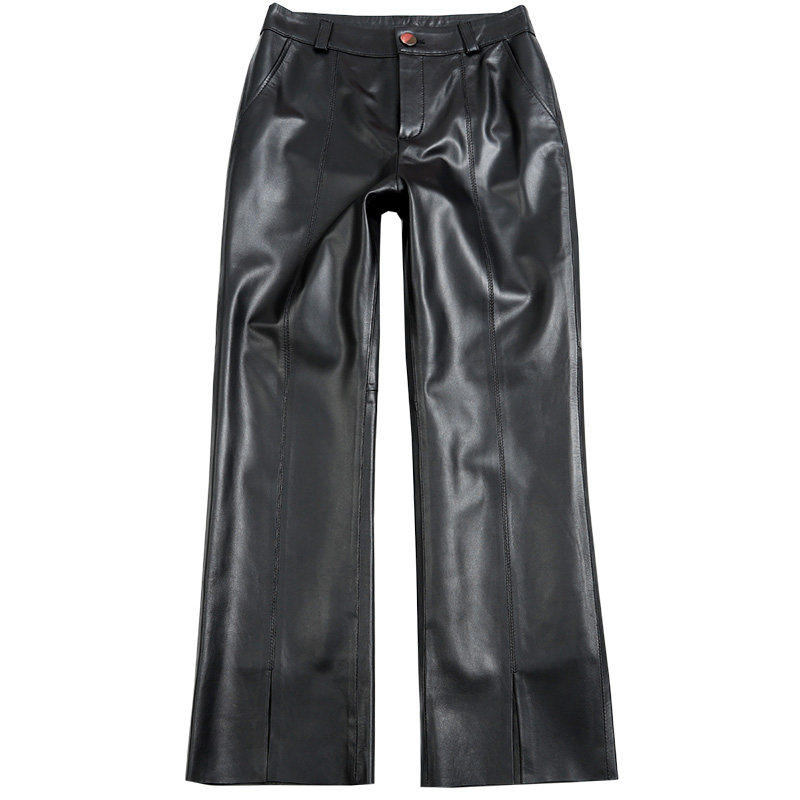 Штаны из овчины, приталенные штаны-клёш, из натуральной кожи, овечка, высокая талия, облегающий крой