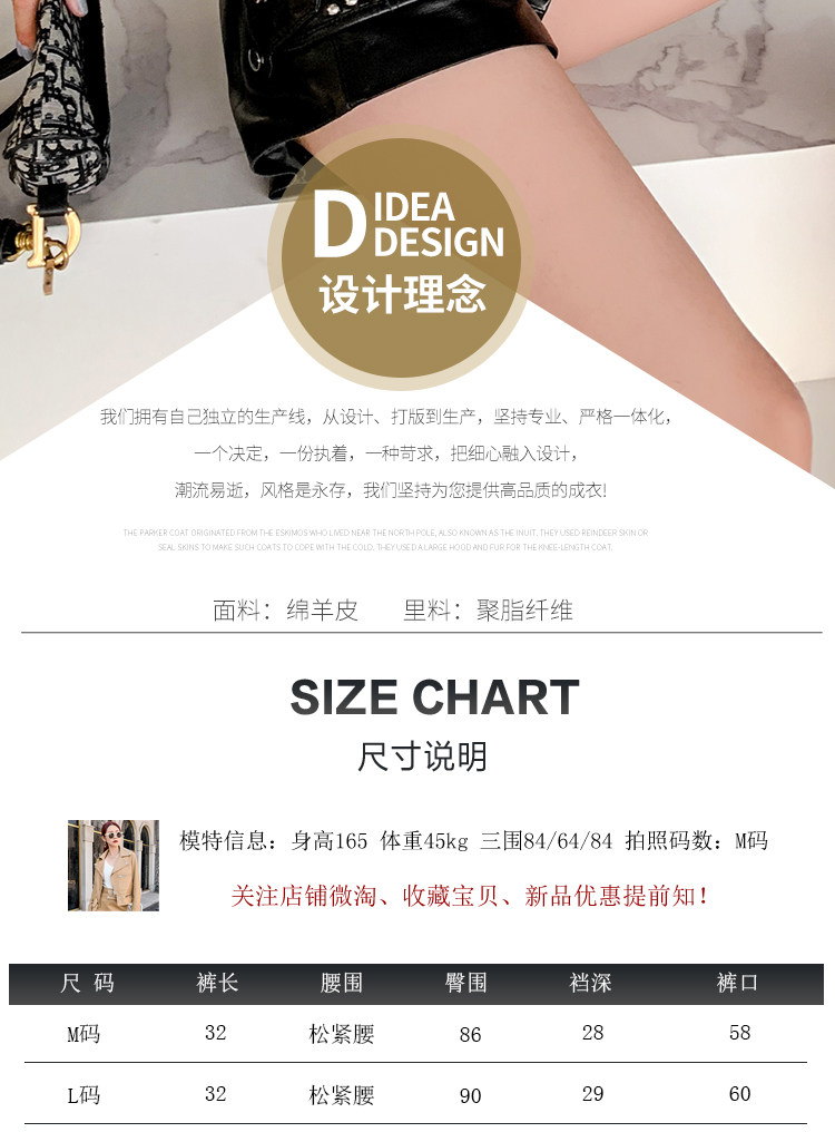 Шорты, модные штаны, из натуральной кожи, эластичная талия, А-силуэт