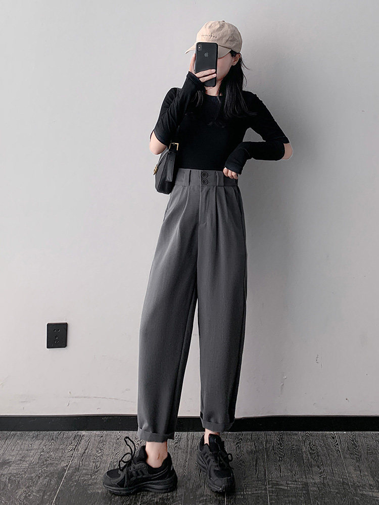 Пиджак классического кроя, тонкие штаны, свободный крой, высокая талия, подходит для подростков
