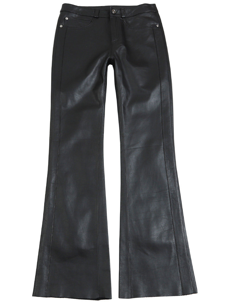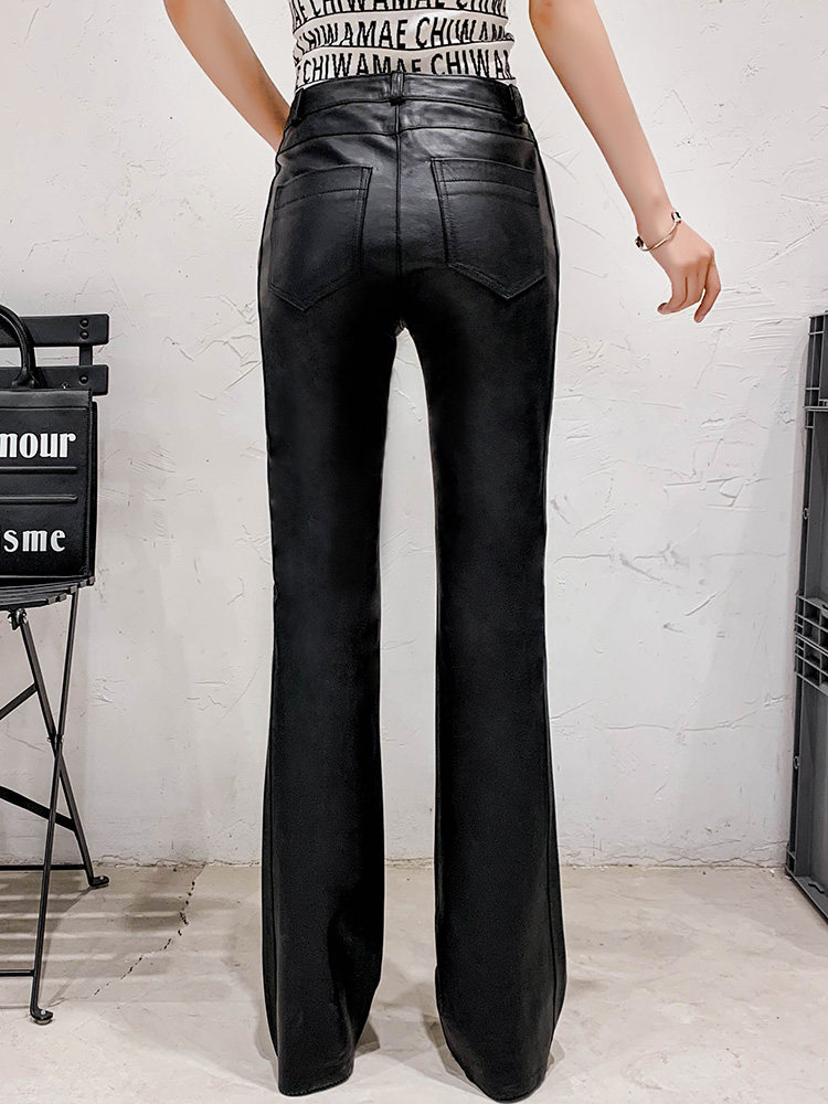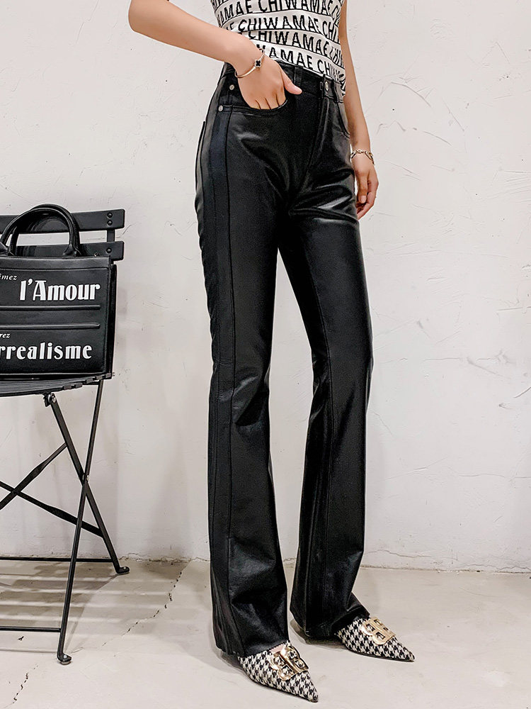 Демисезонные приталенные штаны, кожаные модные штаны-клёш, коллекция 2023, из натуральной кожи, воловья кожа
