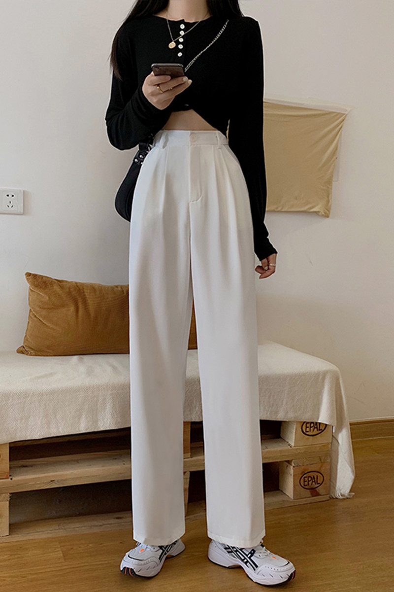 Белый пиджак классического кроя, осенние штаны, леггинсы, приталенные повседневные брюки, свободный прямой крой, высокая талия