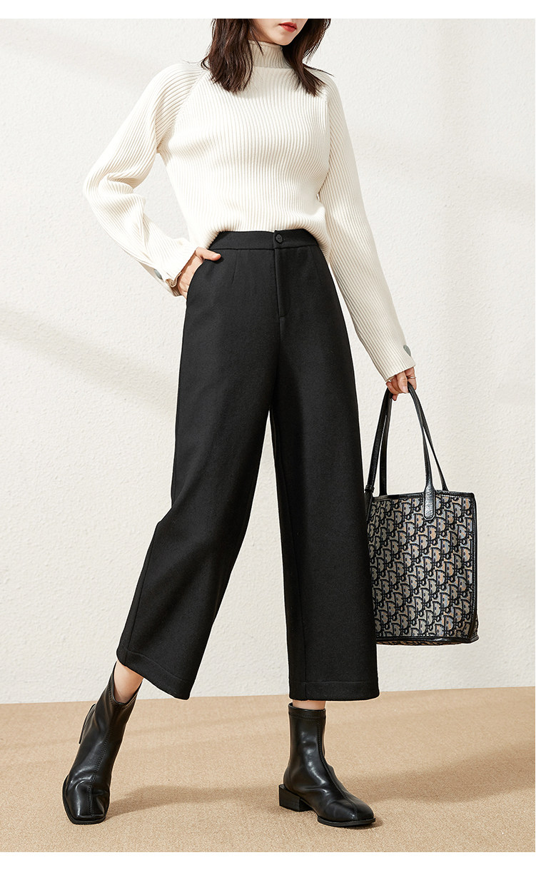 Шерстяные демисезонные штаны, леггинсы, костюм, высокая талия, коллекция 2021, свободный прямой крой, увеличенная толщина